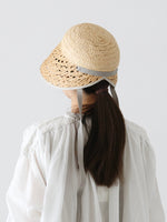 動きを出せるようにラフィアのブレードを使用し、ブリム部分は曲げたりバランスを自由に変えていただくことができます。