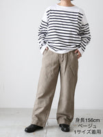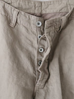 コットンリネンのお素材は程よく柔らかで履きやすく、着るほどに体に馴染んで一年通して着ていただけるパンツです。
