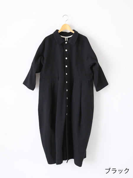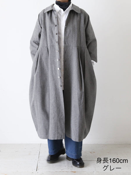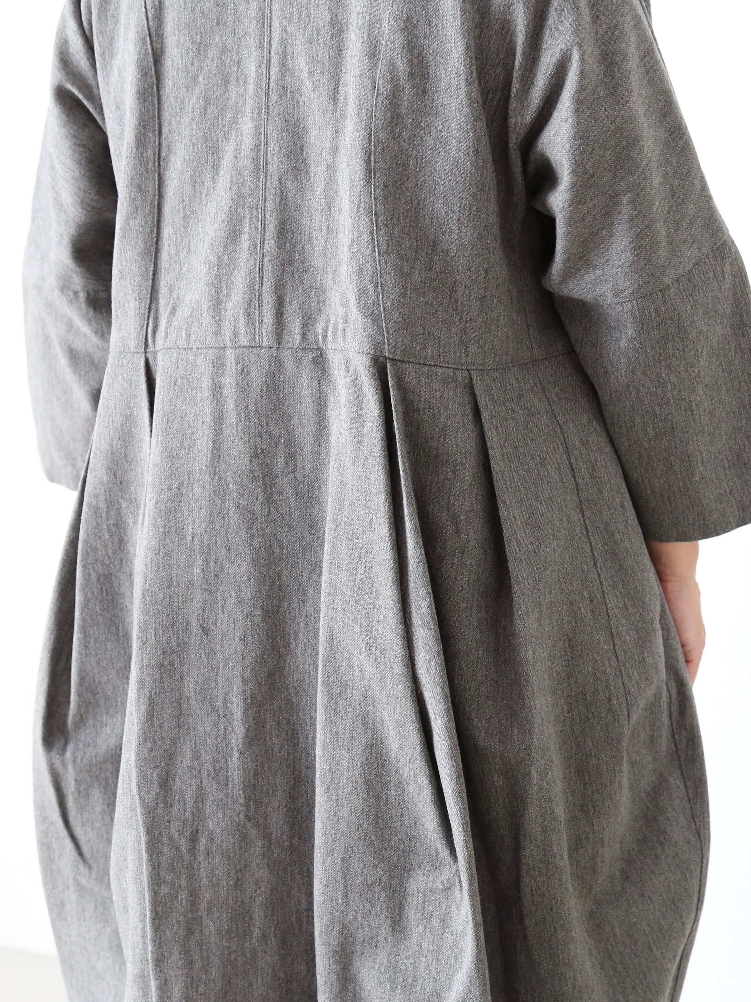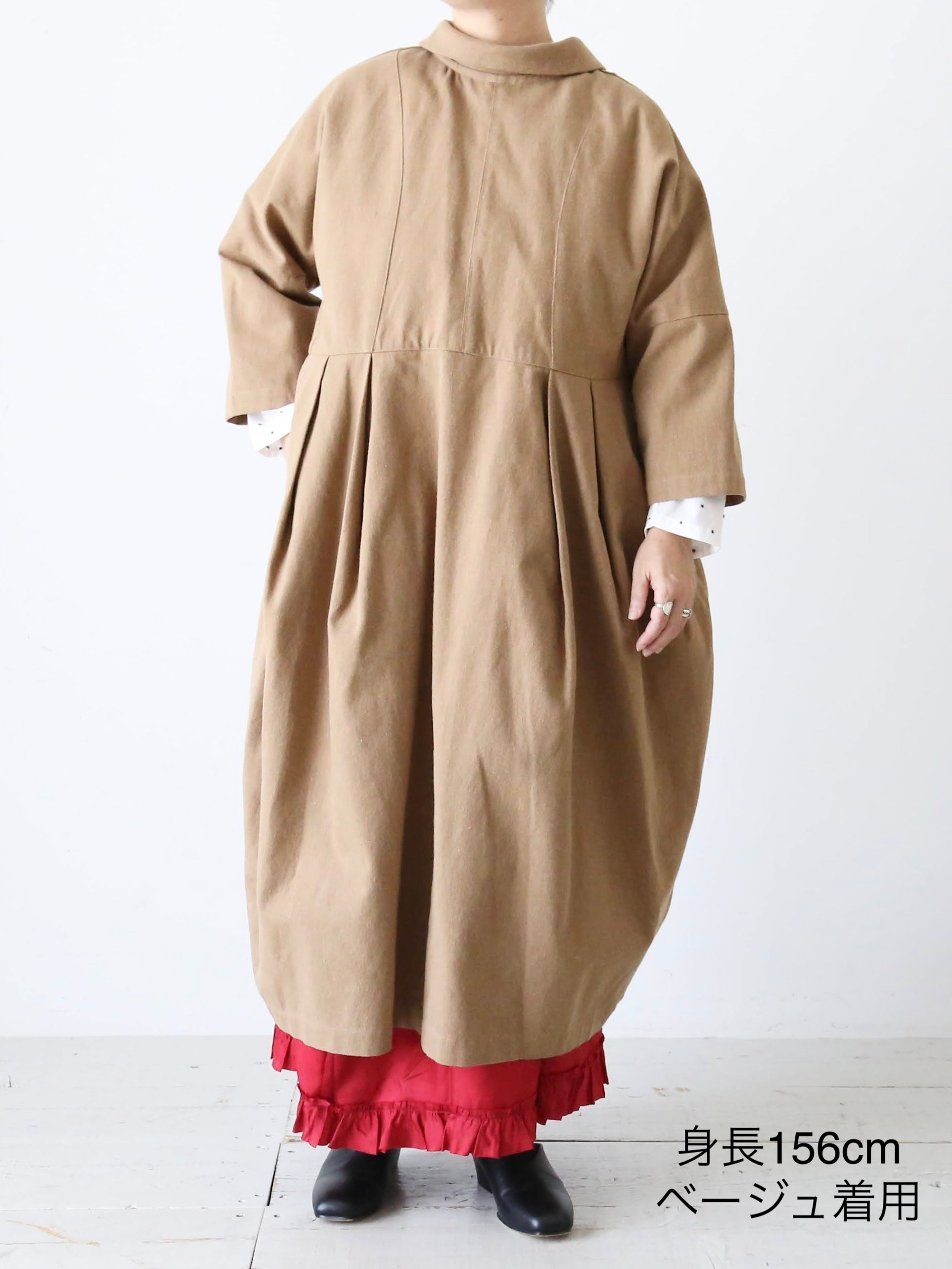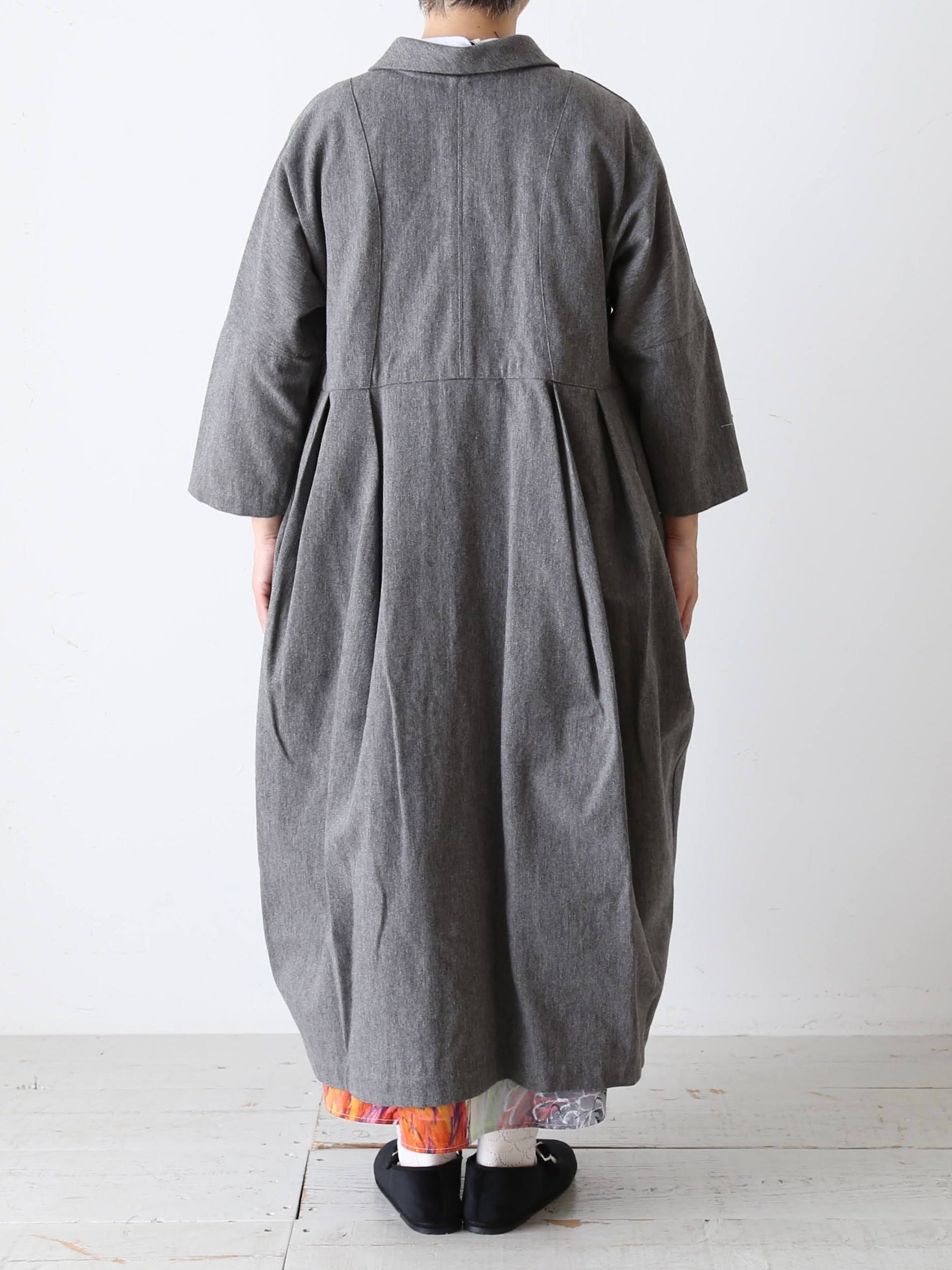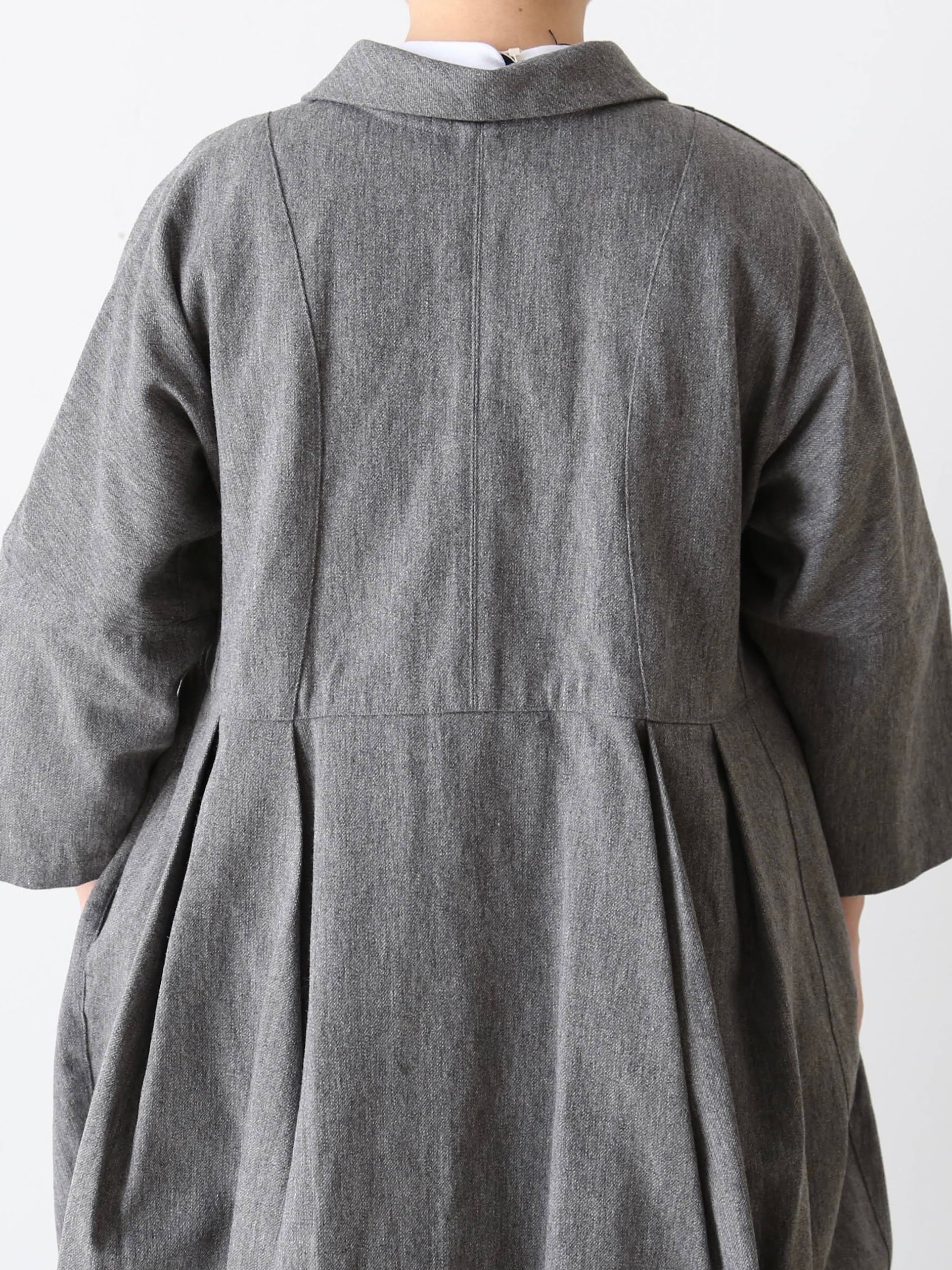 前後どちらを前にしても着用できるカッティングで、コートとしてもワンピースとしてもお使いいただけます。