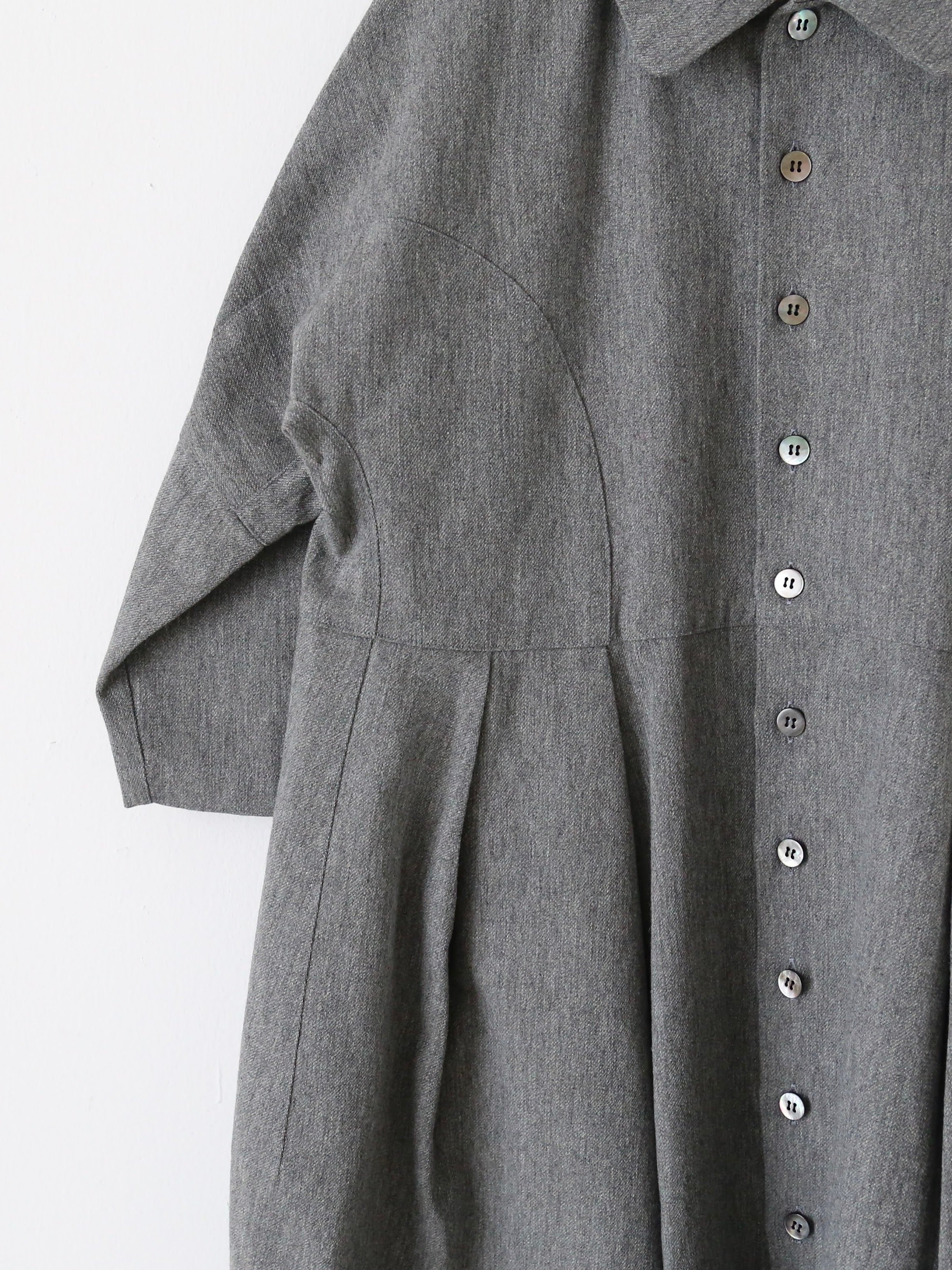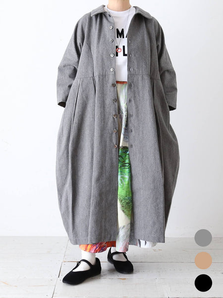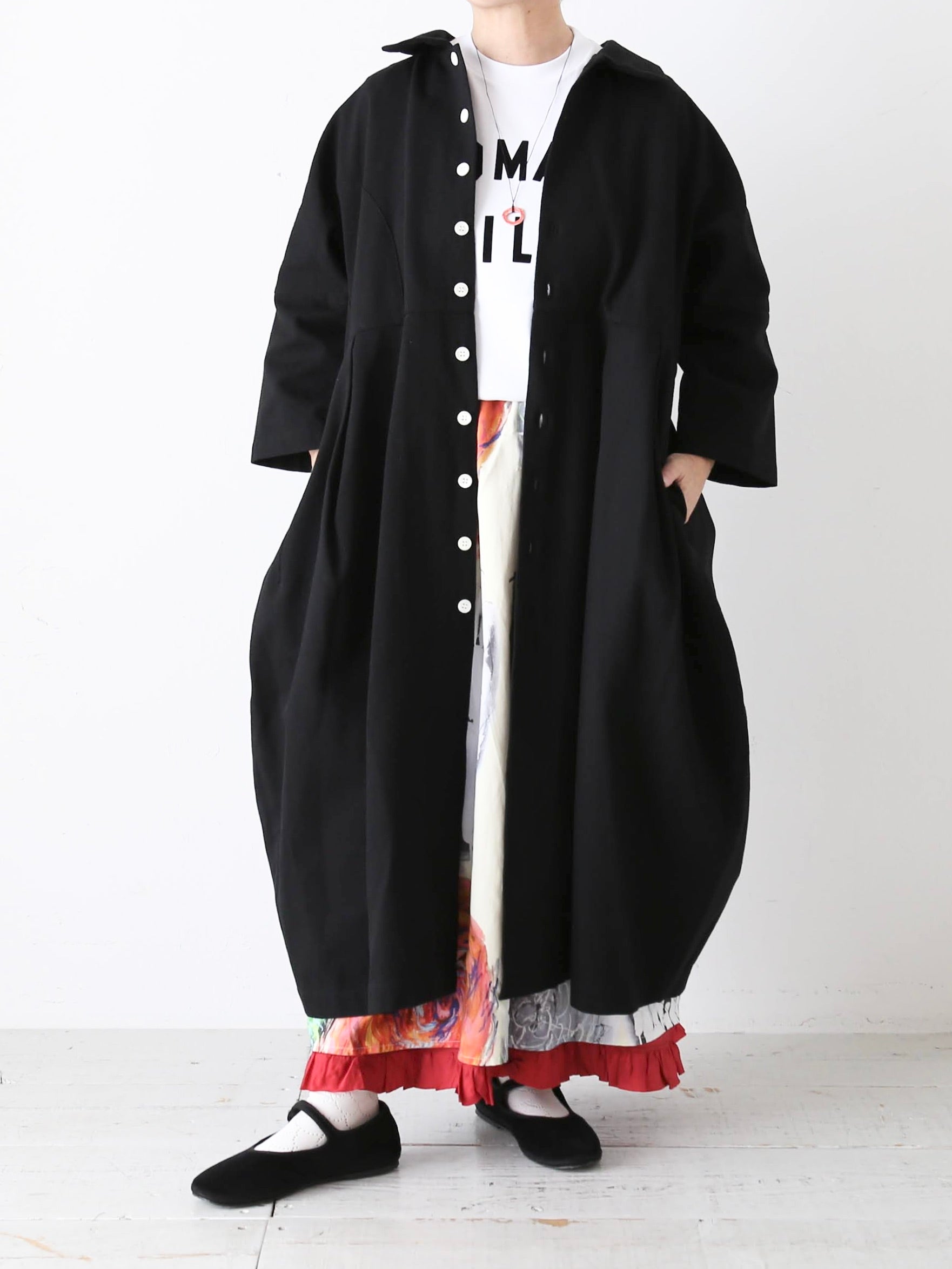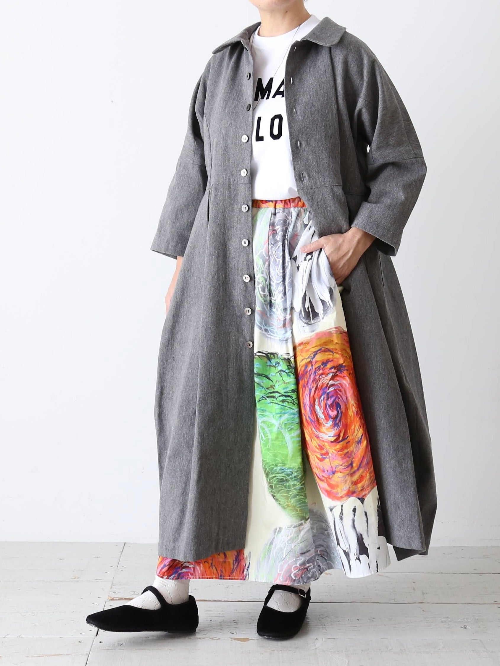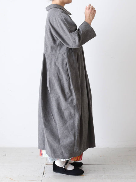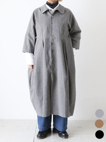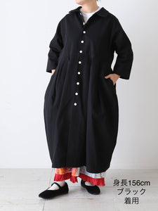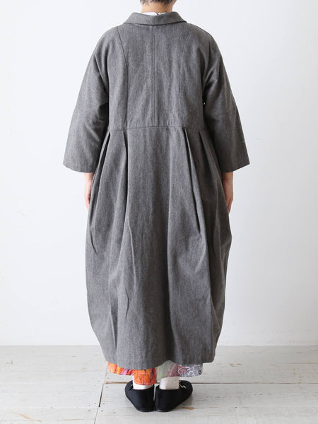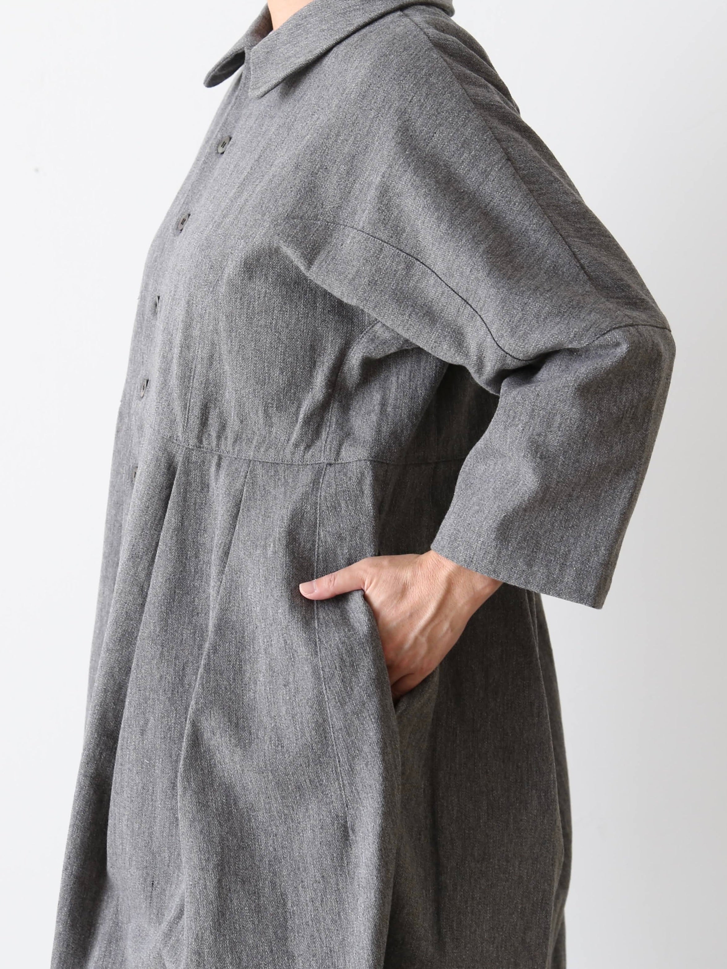 前後どちらを前にしても着用できるカッティングで、コートとしてもワンピースとしてもお使いいただけます。