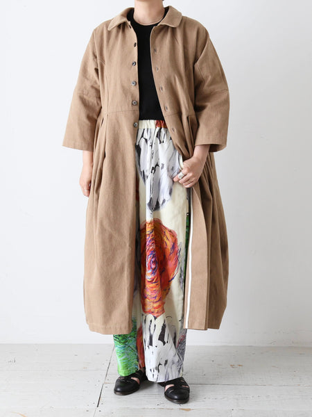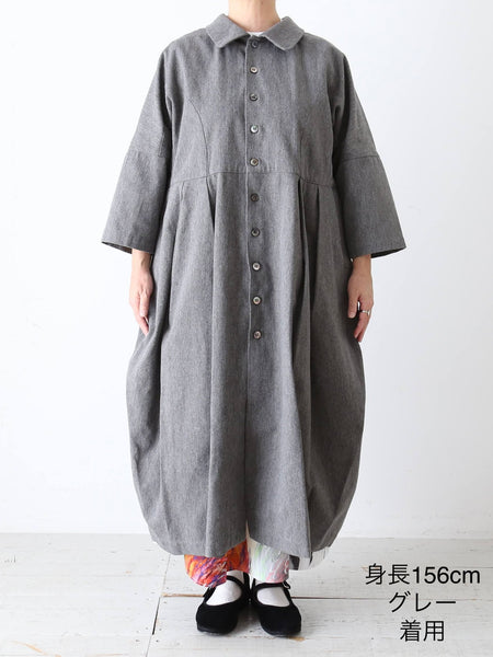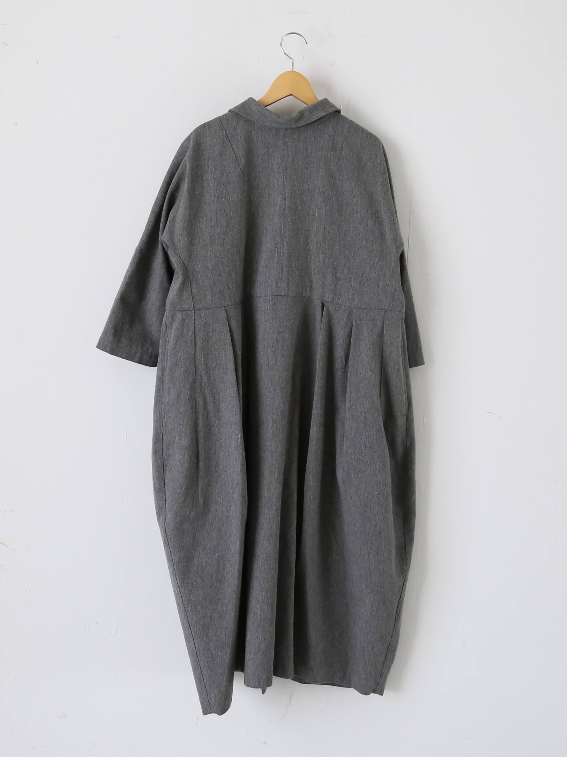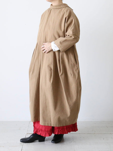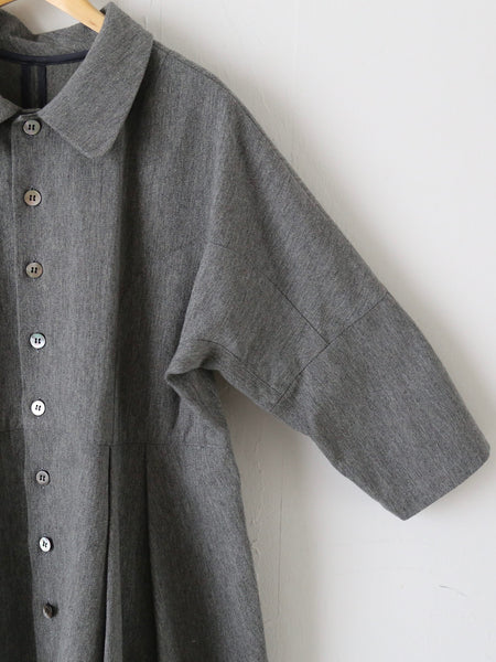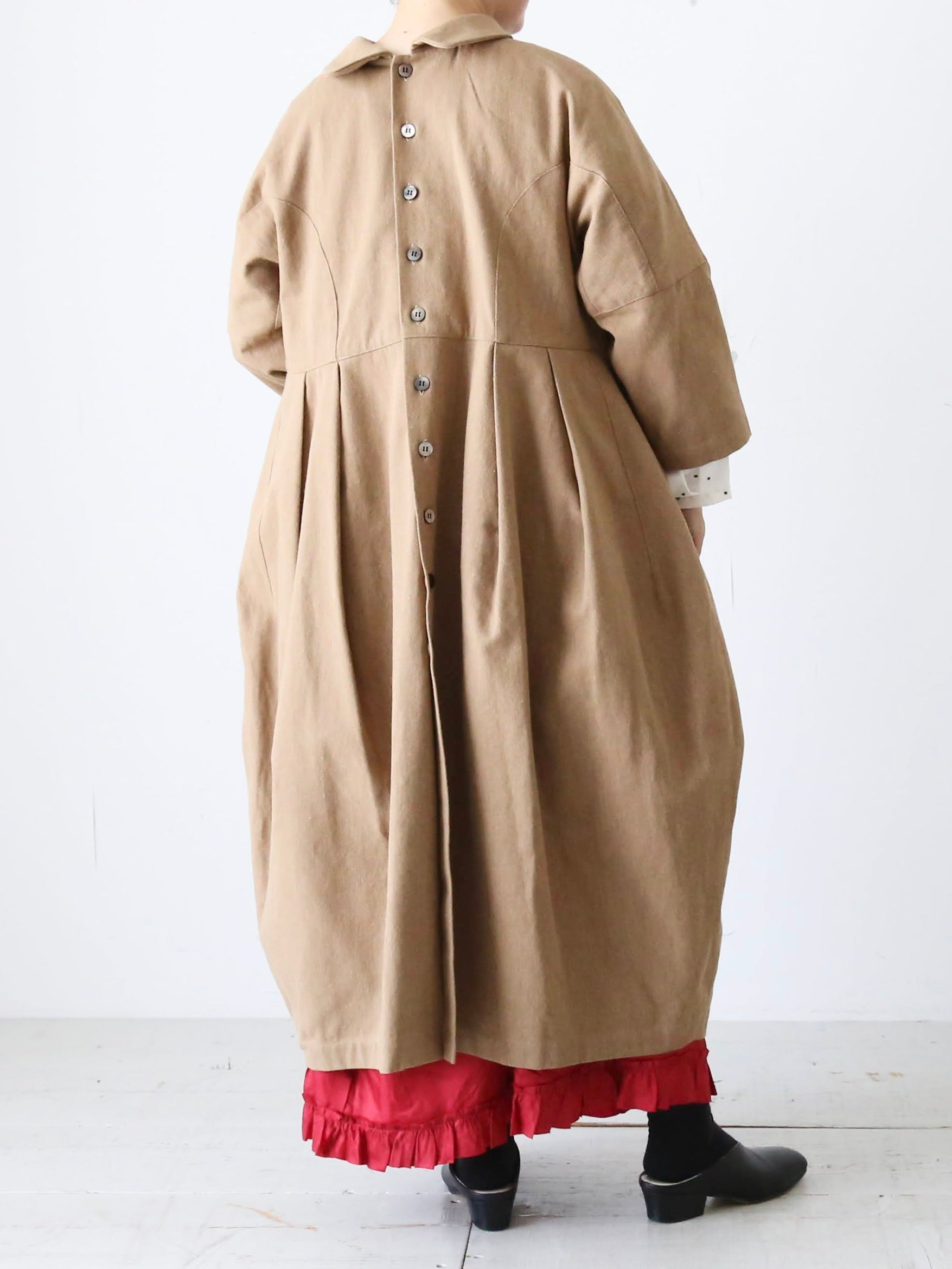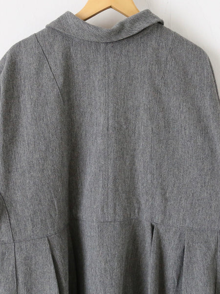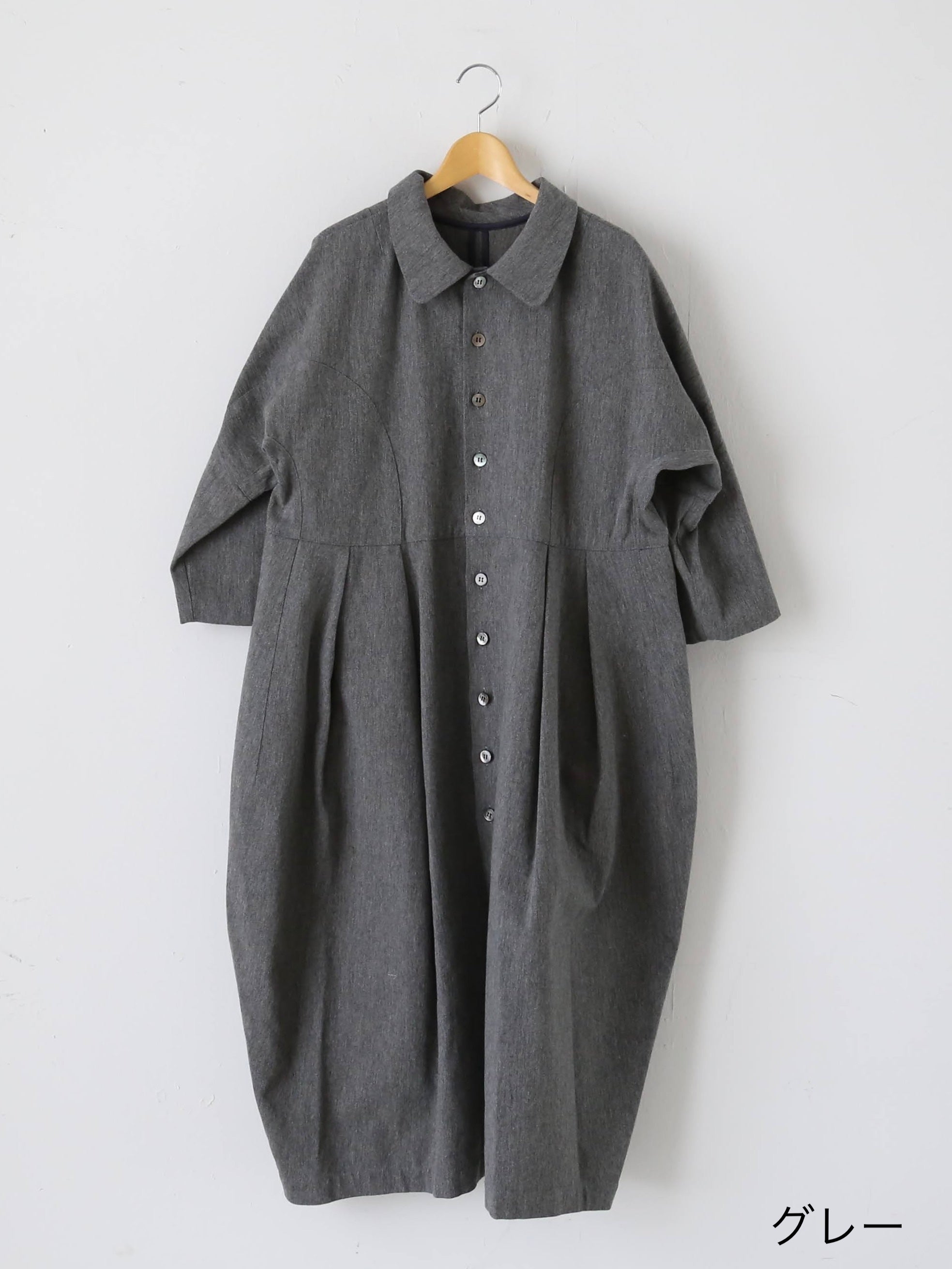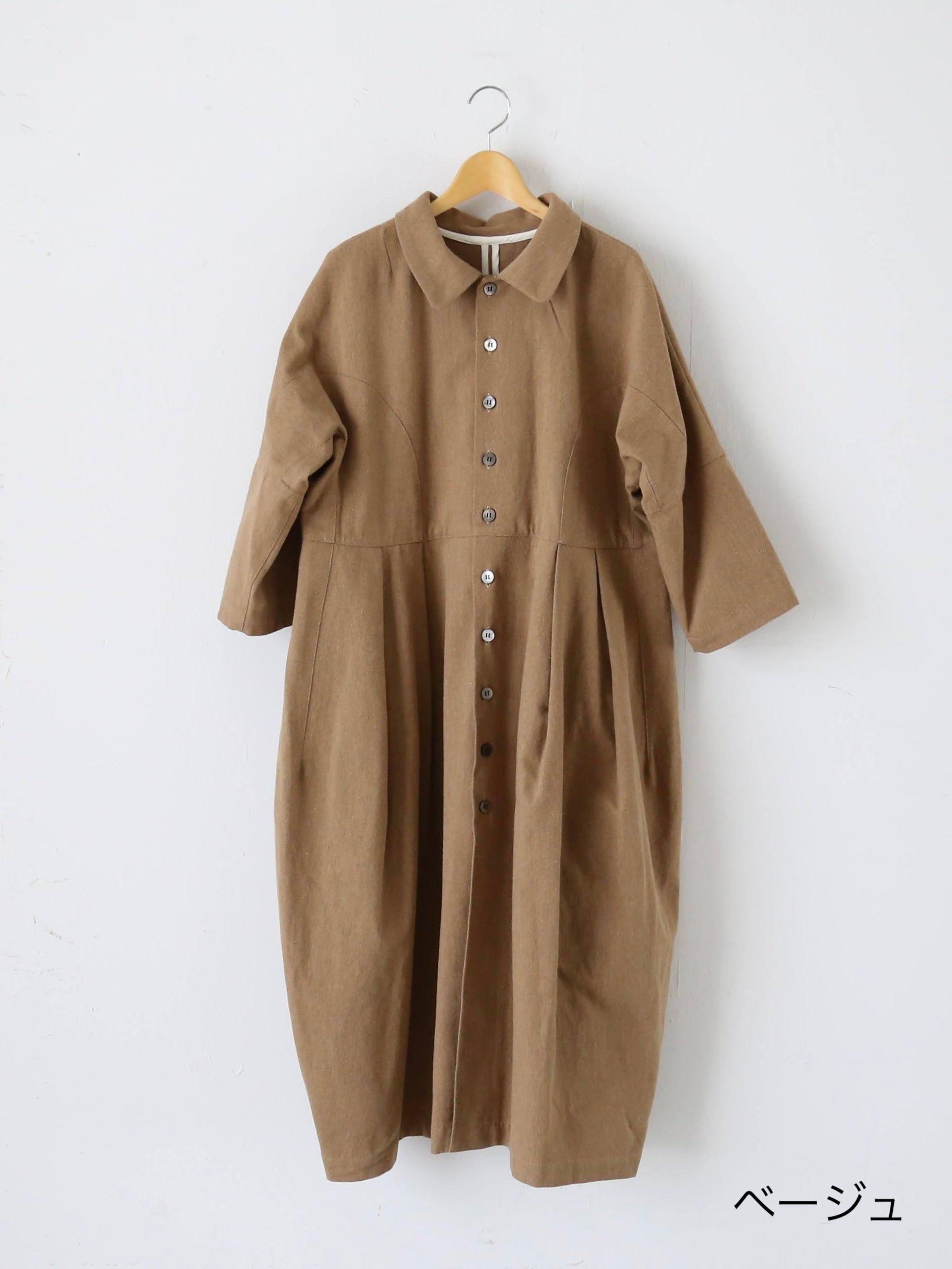 前後どちらを前にしても着用できるカッティングで、コートとしてもワンピースとしてもお使いいただけます。