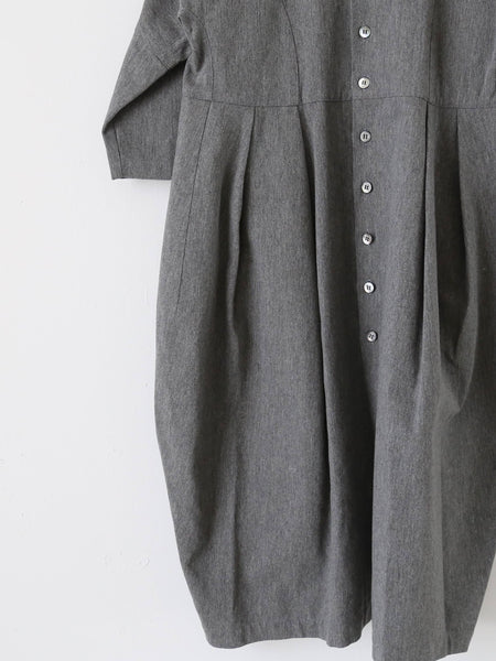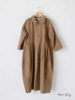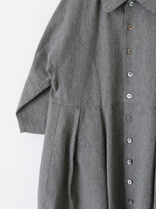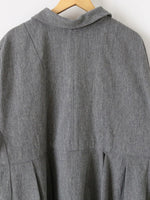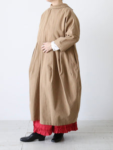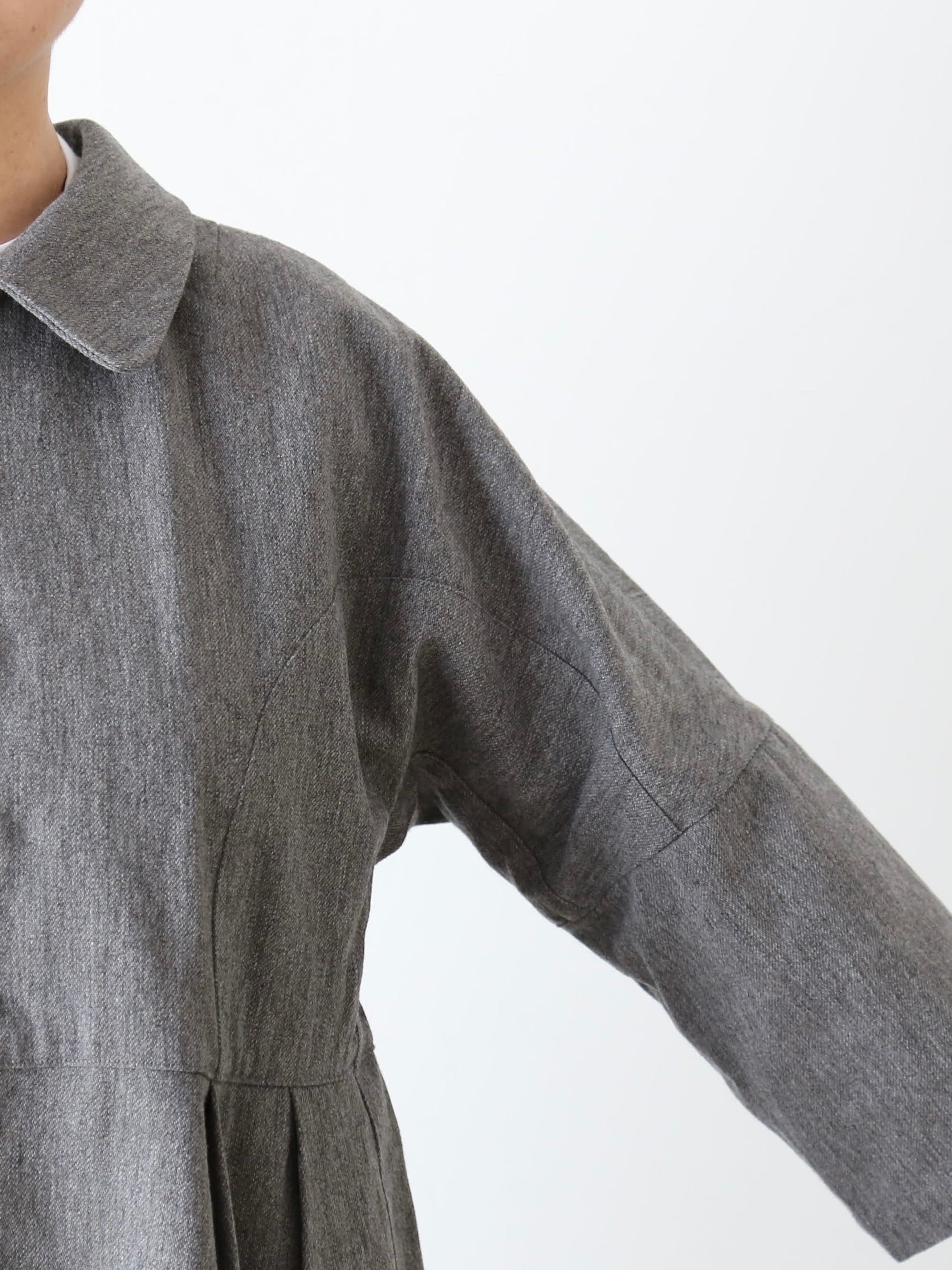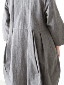 コクーンシルエットの際立つ、しっかりとしたウールコットンのアーミーツイル地コートワンピース。