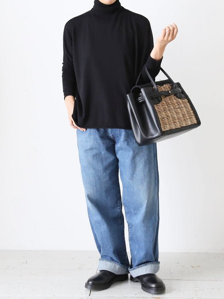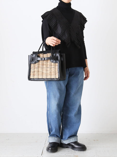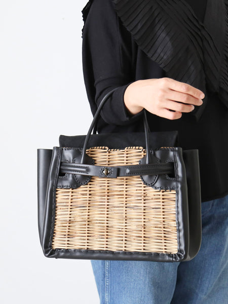 レザーのかっちり感と、かごのラフさが程よくミックスされていて、
