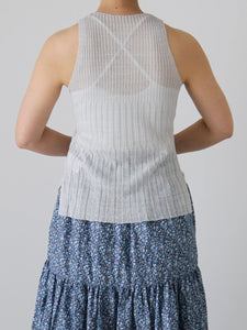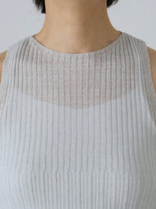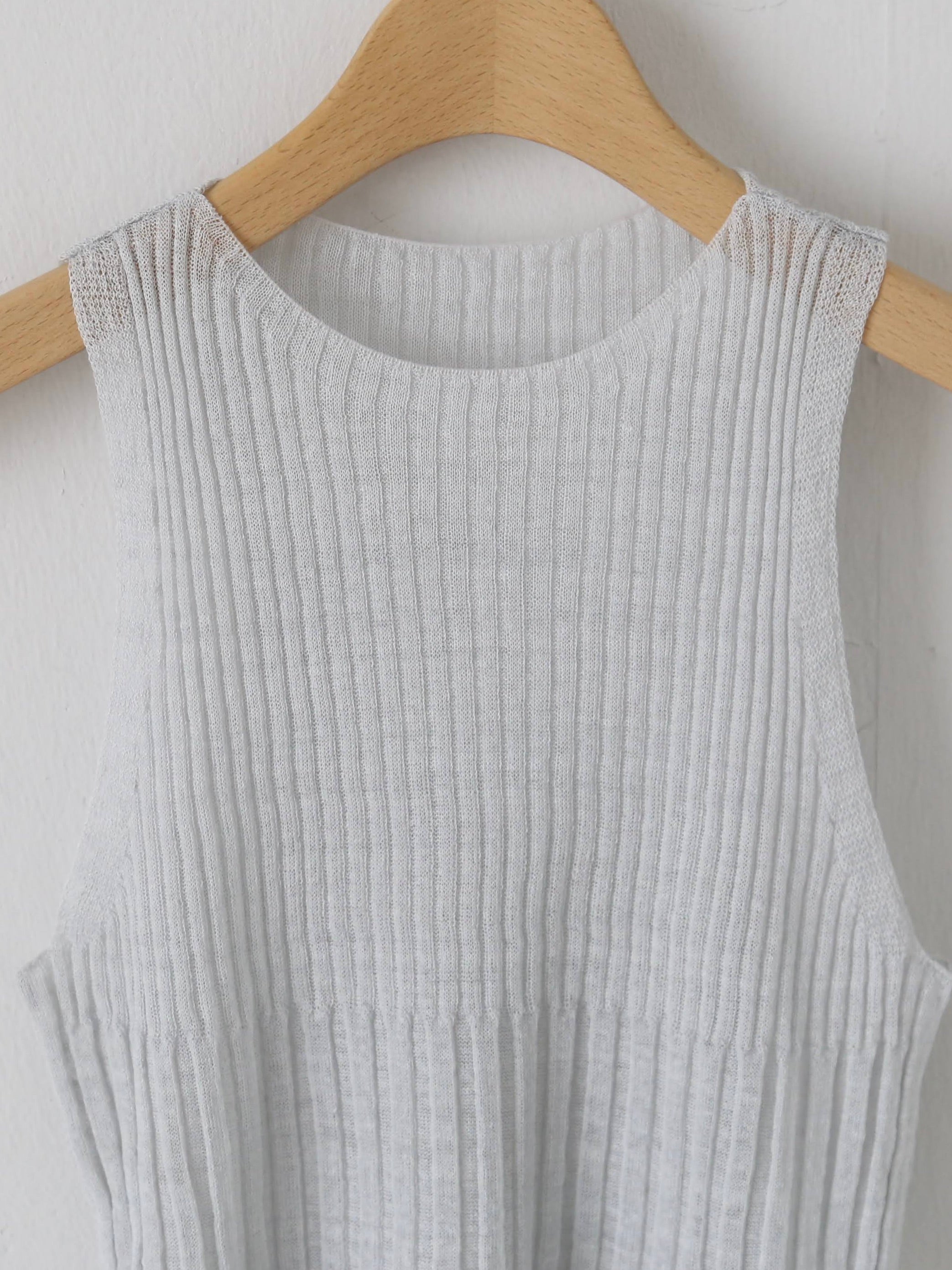 涼しい麻素材のアメリカンスリーブのニットタンクトップです。