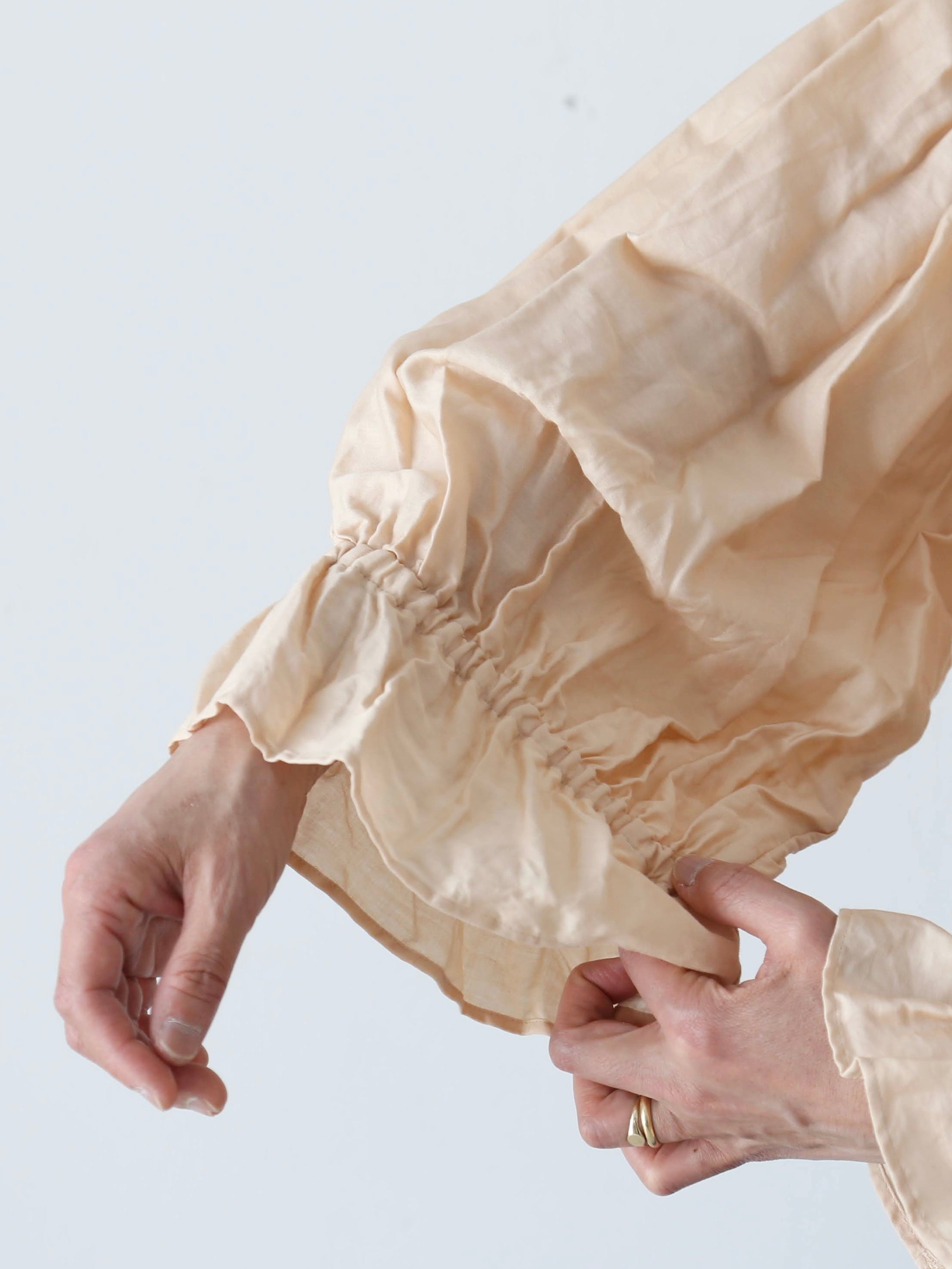 たっぷりのギャザーが施された、どこから見ても素敵なブラウスです。