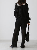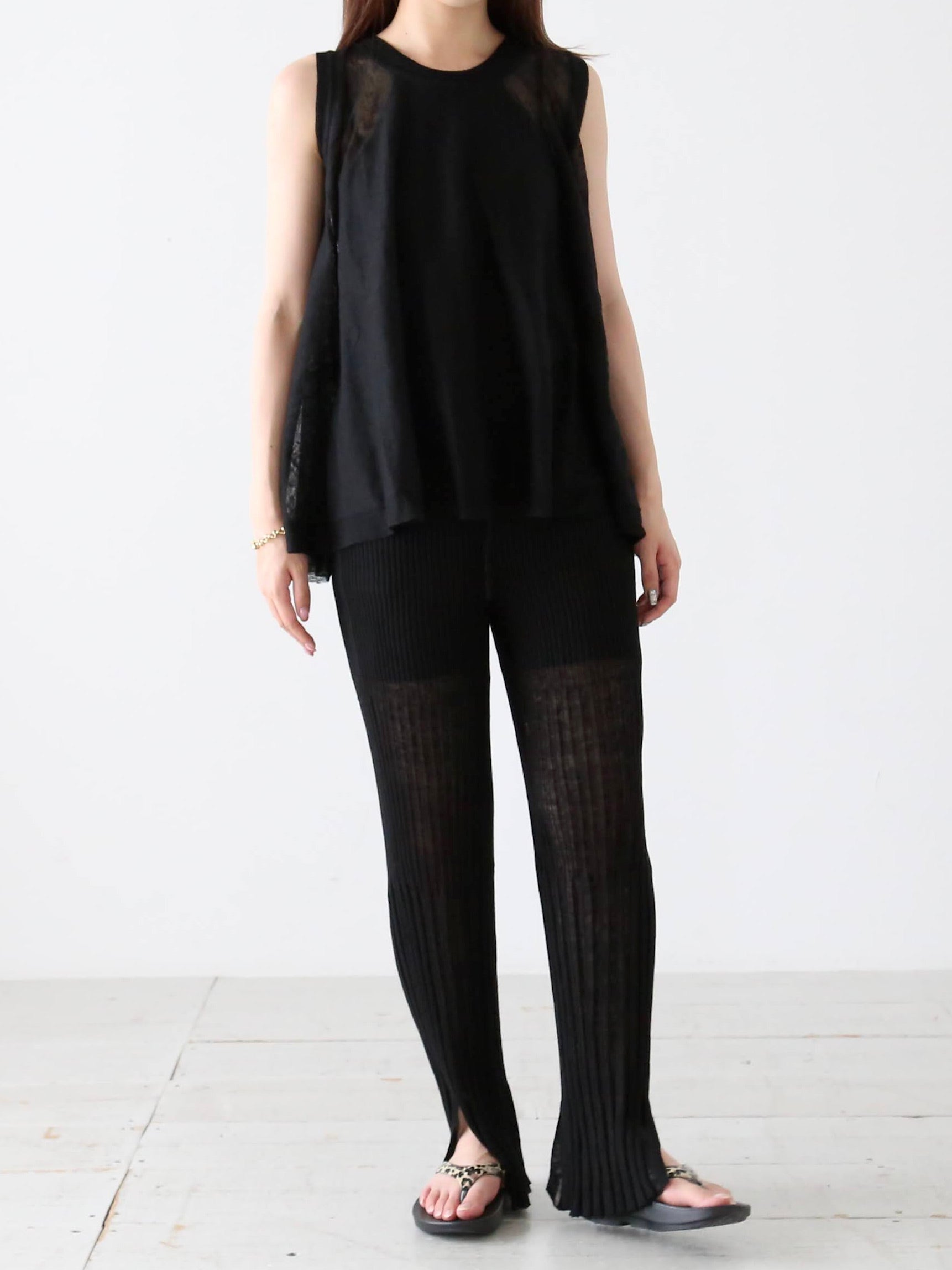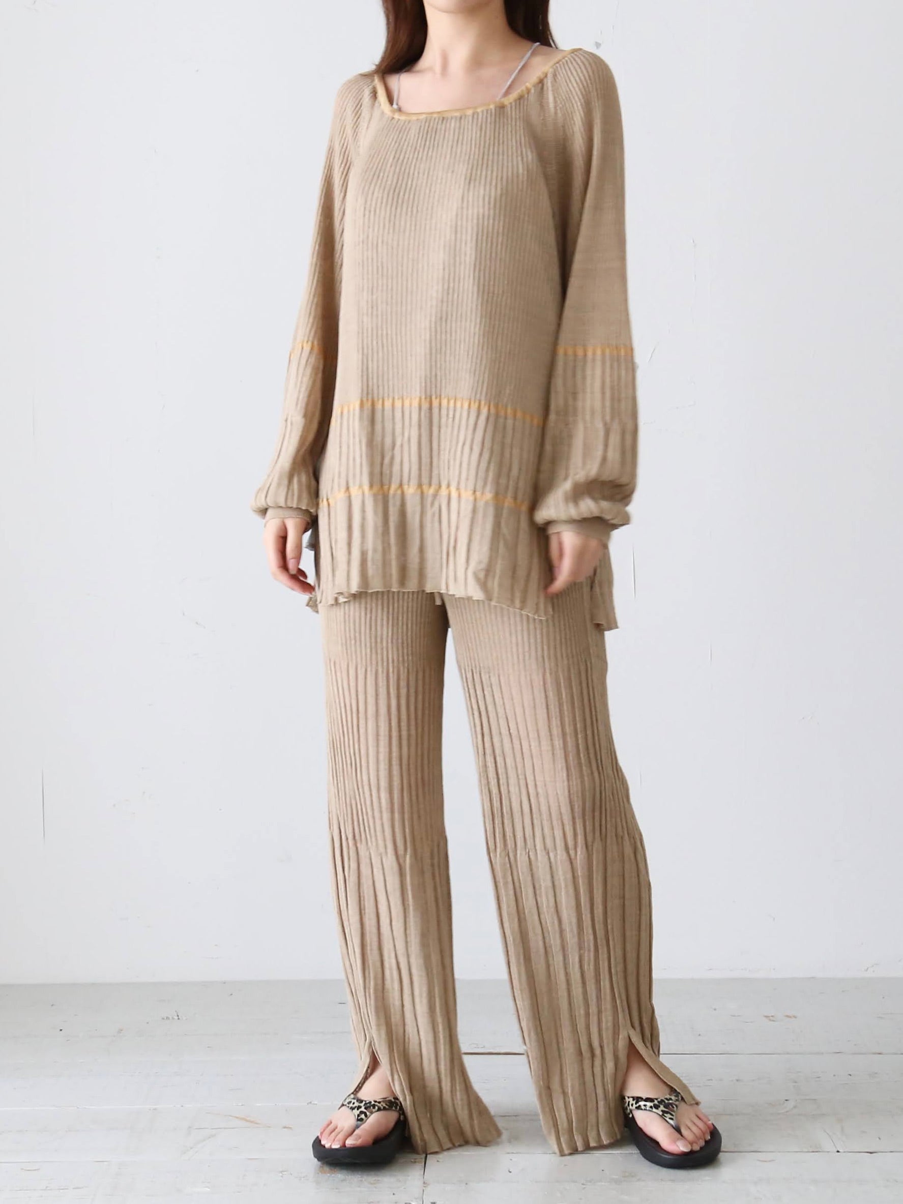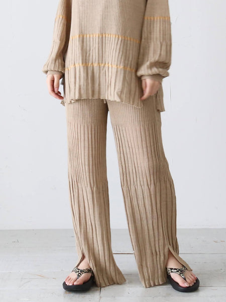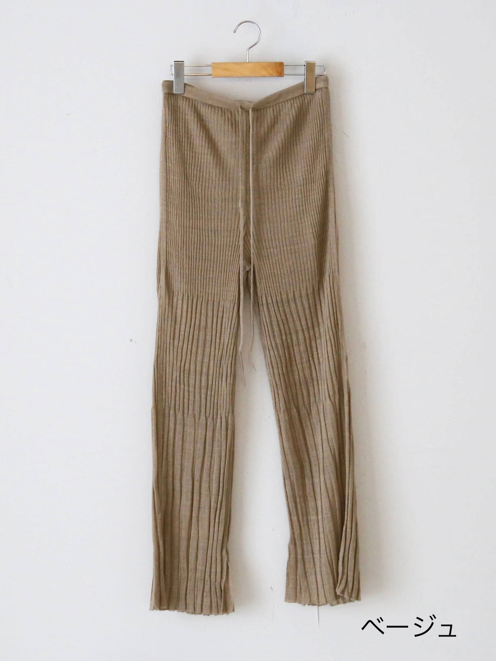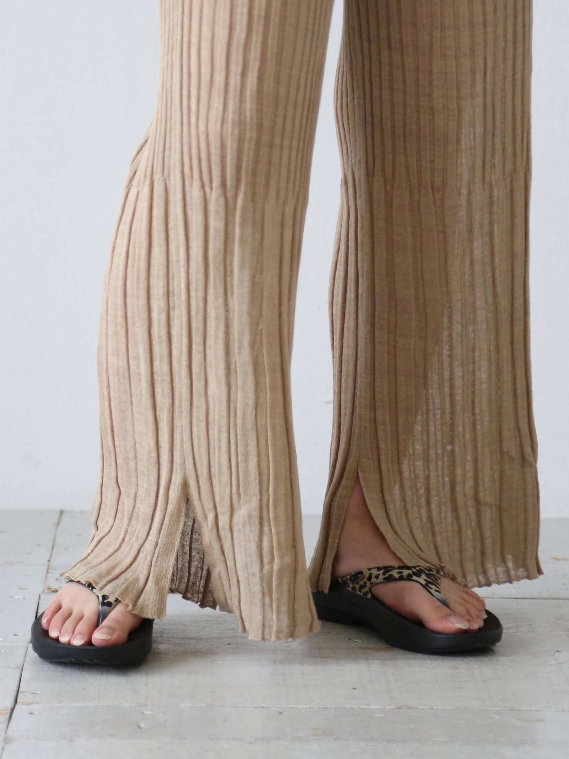 春夏らしい軽やかな風合いのリブニットパンツです。