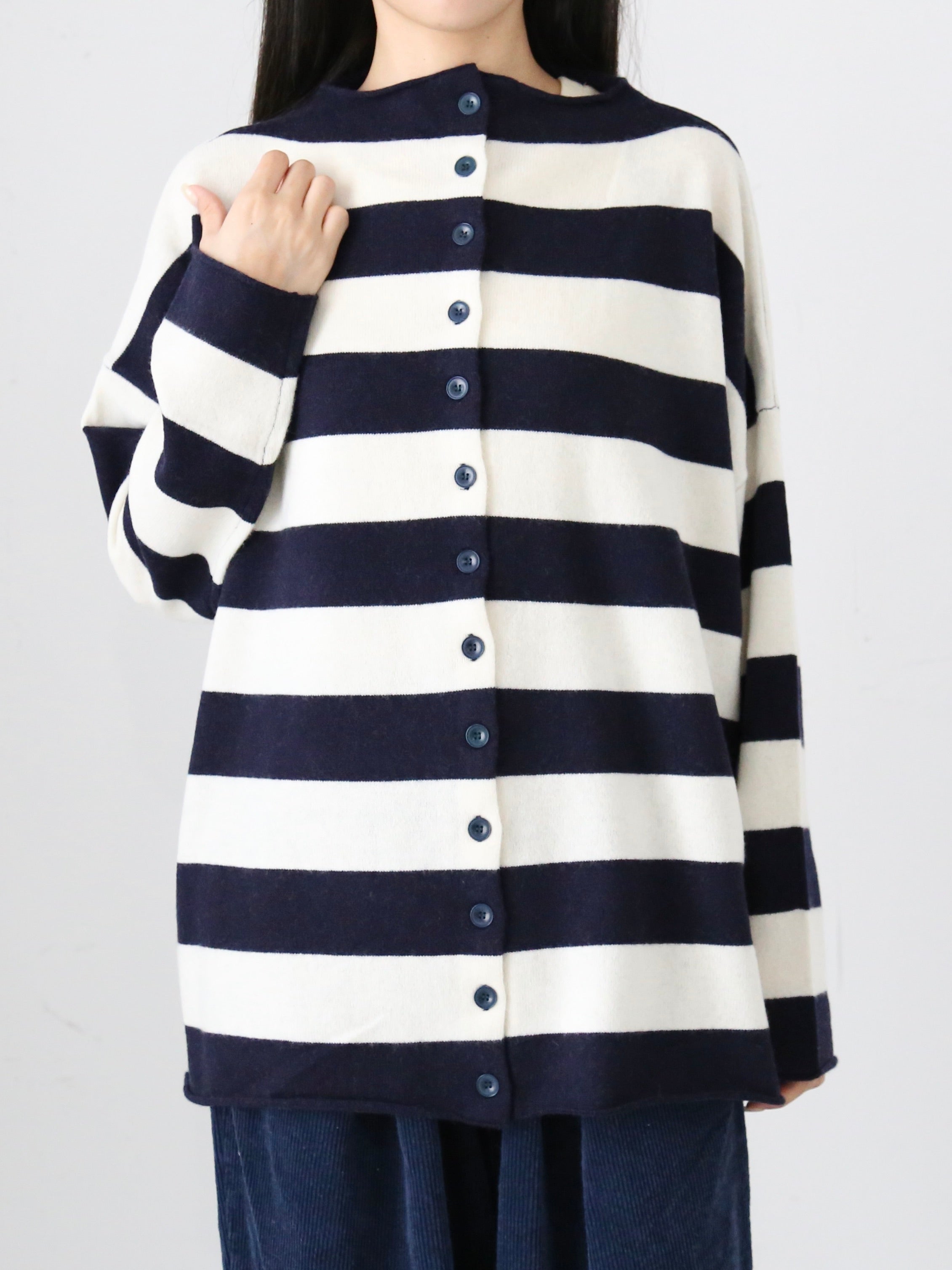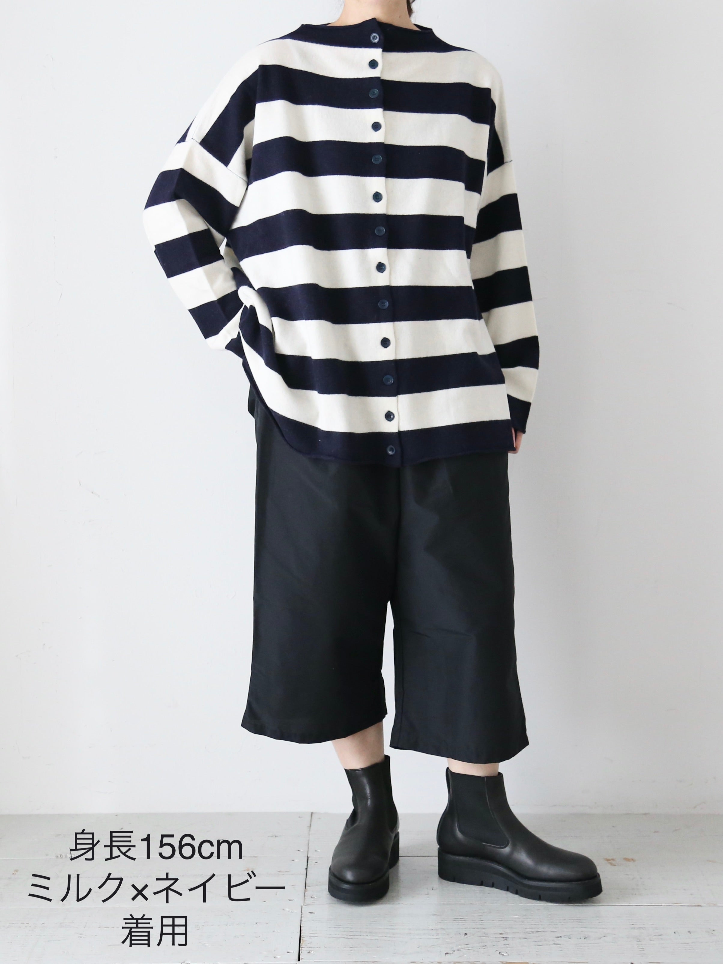 ネックもボトルネックや襟付きカーディガンのようにボタンの留め方で様々な印象でお召しいただけます。
