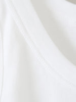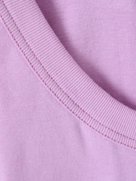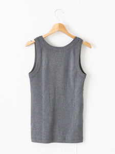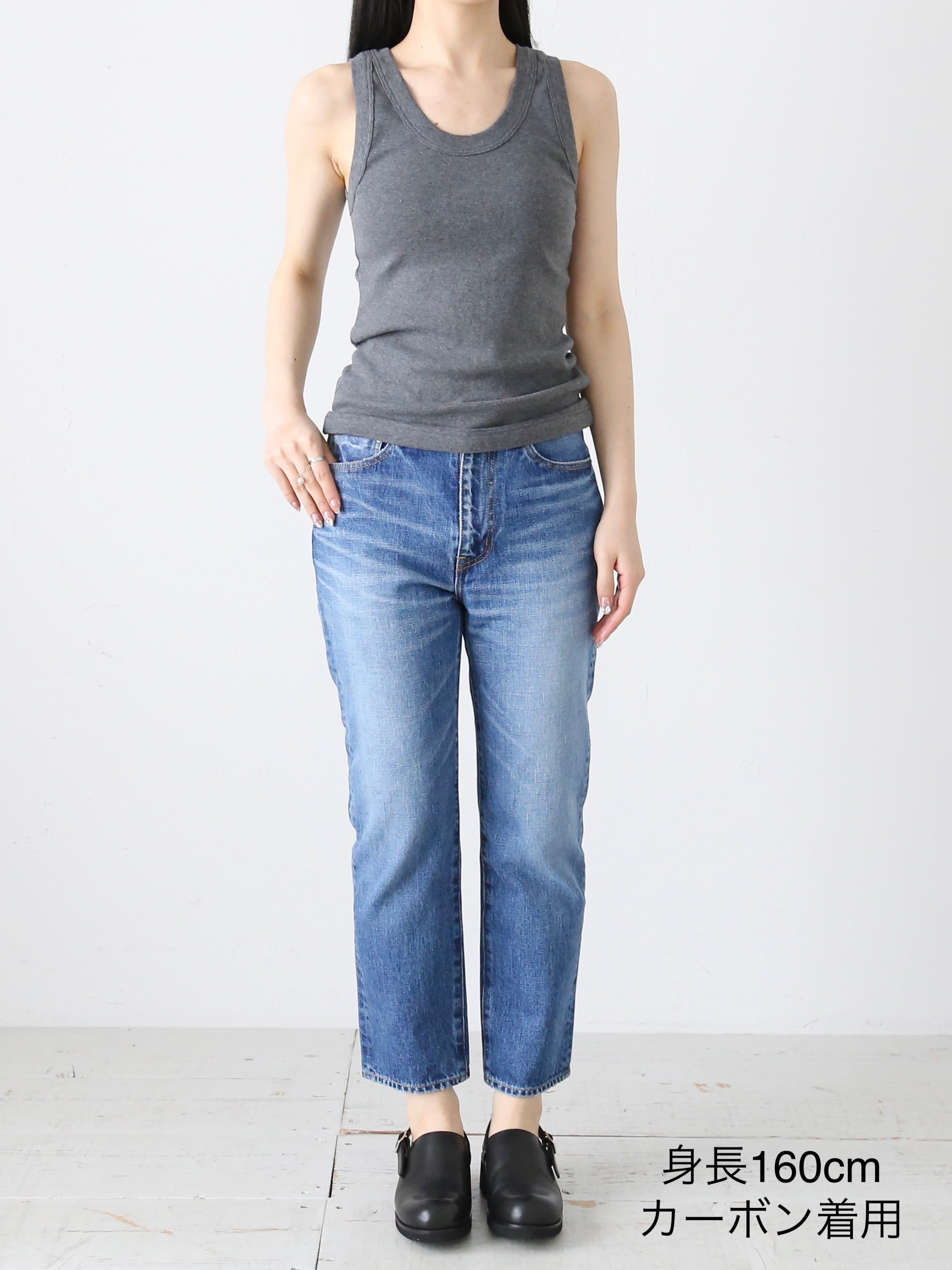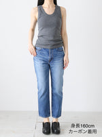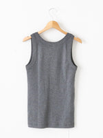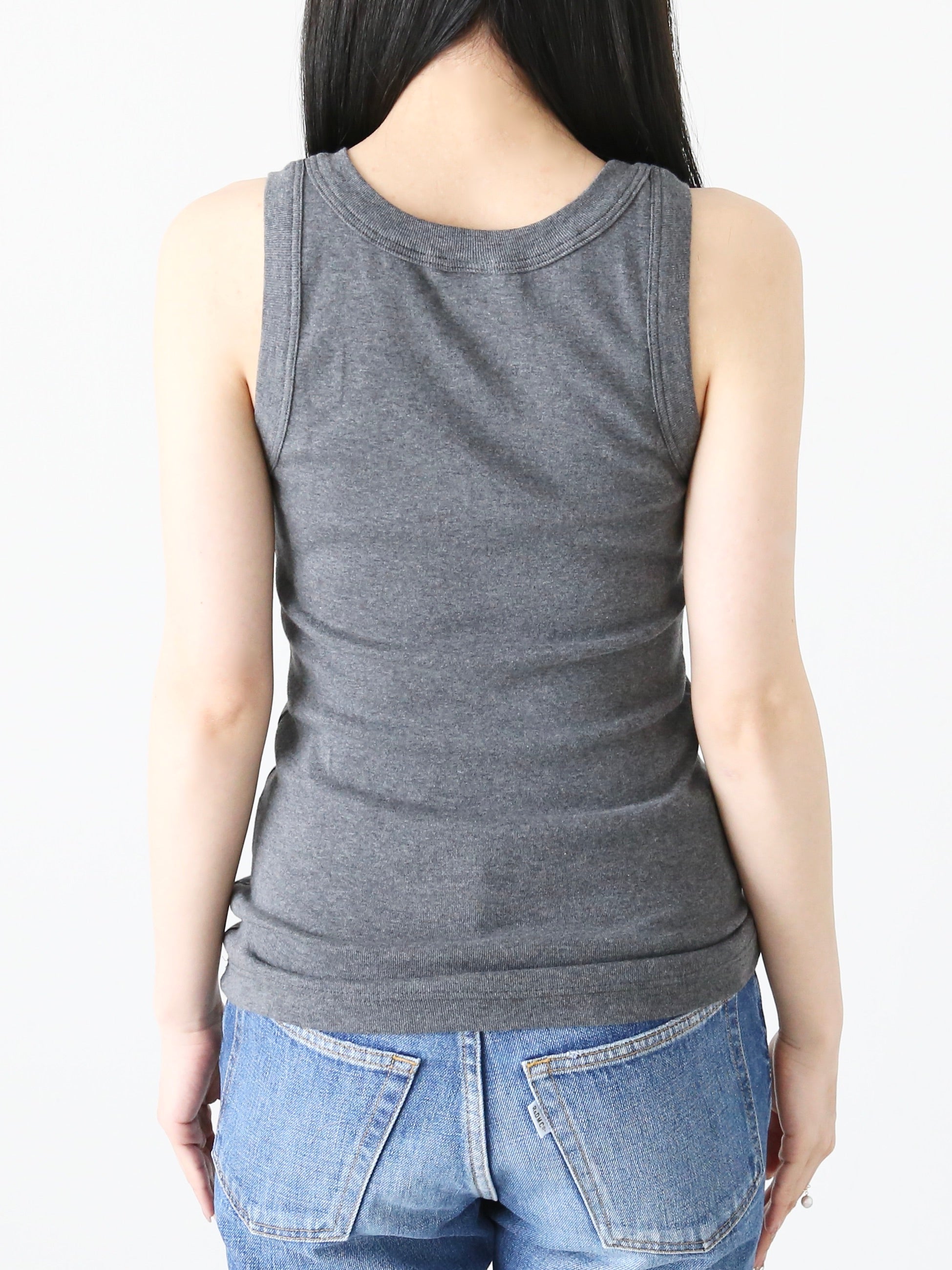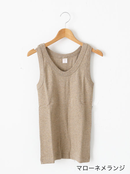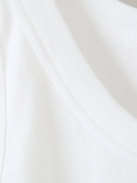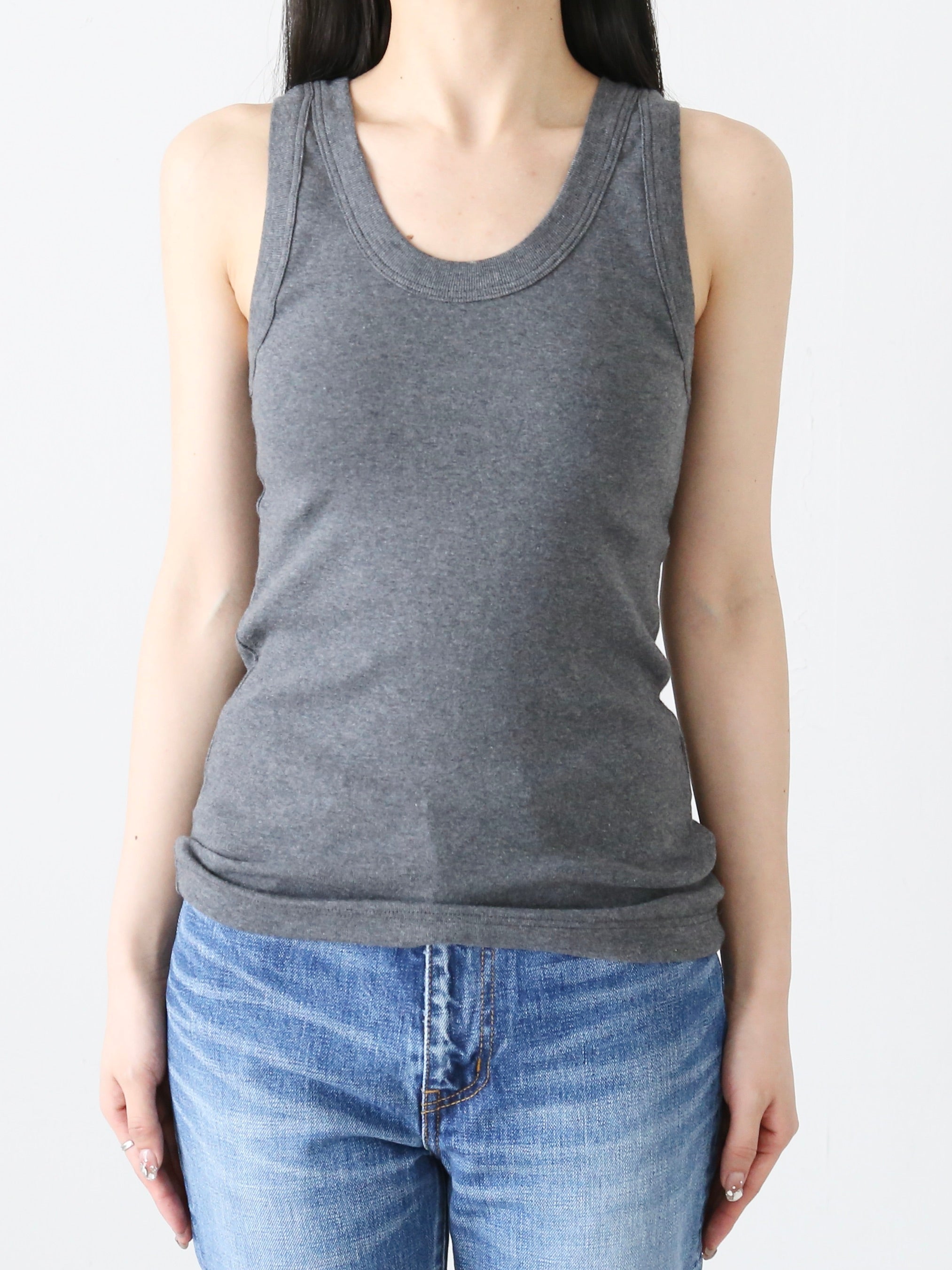 少し肉厚のフライス素材で透け感もなく、程よいフィット感とインナーが見えないアームホールのシンプルなシルエットに仕上がっています。