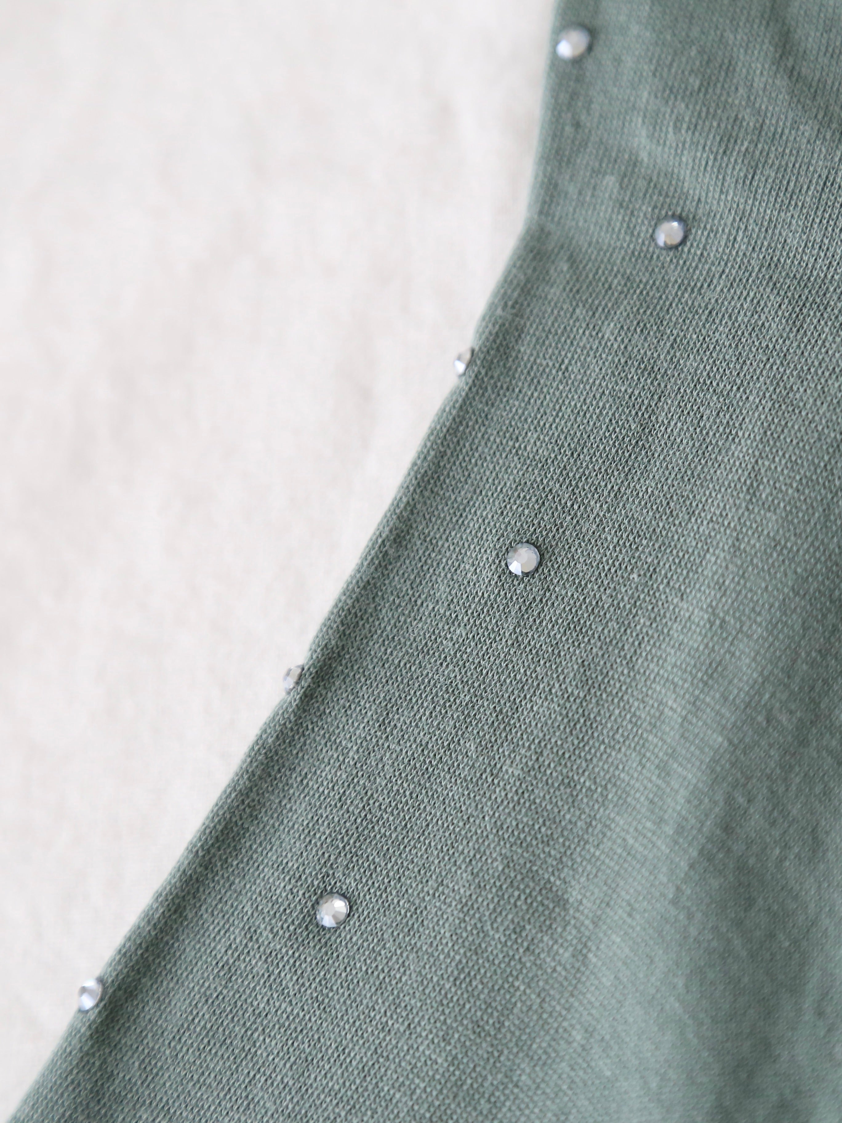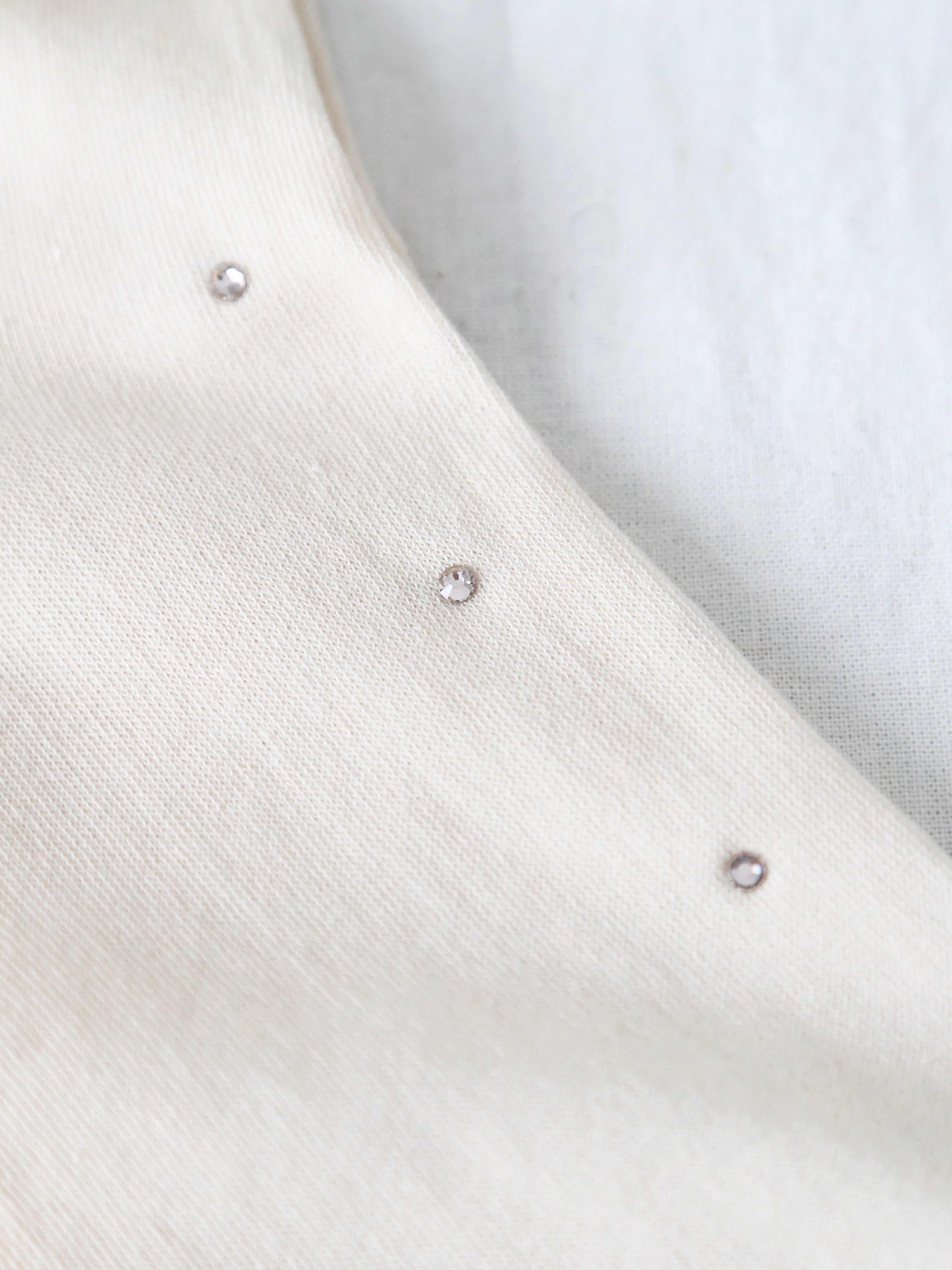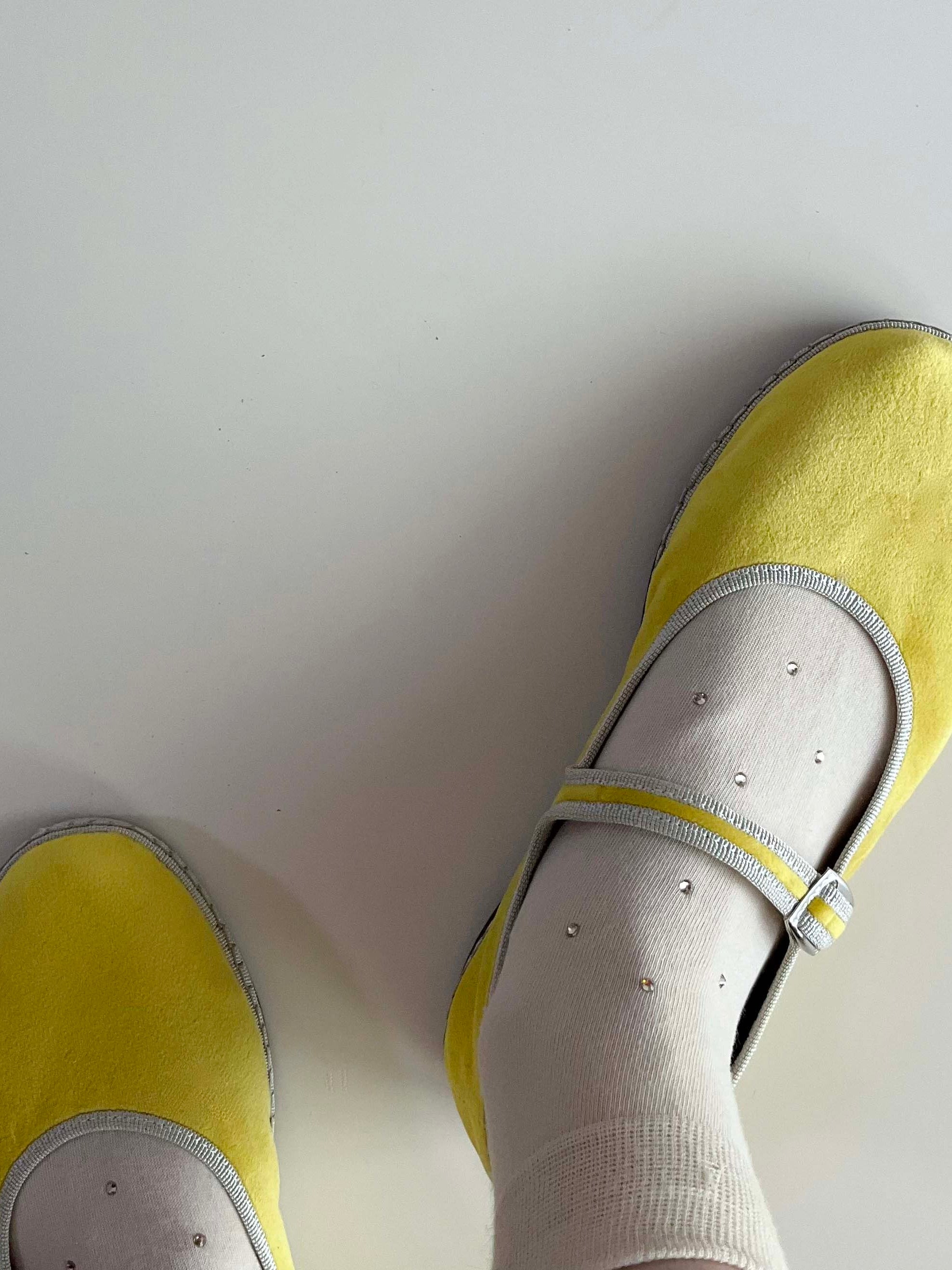 足の甲部分にストーンがついているのでスリッポンやメリージェンのようなストラップシューズと組み合わせてお洒落な足元を演出。