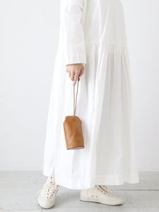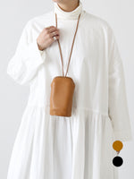 縦長なので携帯の収納も可能。また、ショルダー紐が内側に入っているところにキーリングが付いているので鍵を収納することができます。ショルダーの革紐もロックミシンのようにかがった、高級感のあるものになっていて、2つの結び目をスライドさせることで長さ調節のできる、無駄を省いたミニマルな仕様となっている。短くすることで手首に引っかけて持つことも可能。裏地は綿麻を採用。ご自身用は勿論、贈り物としてもお奨めのアイテムとなっております。