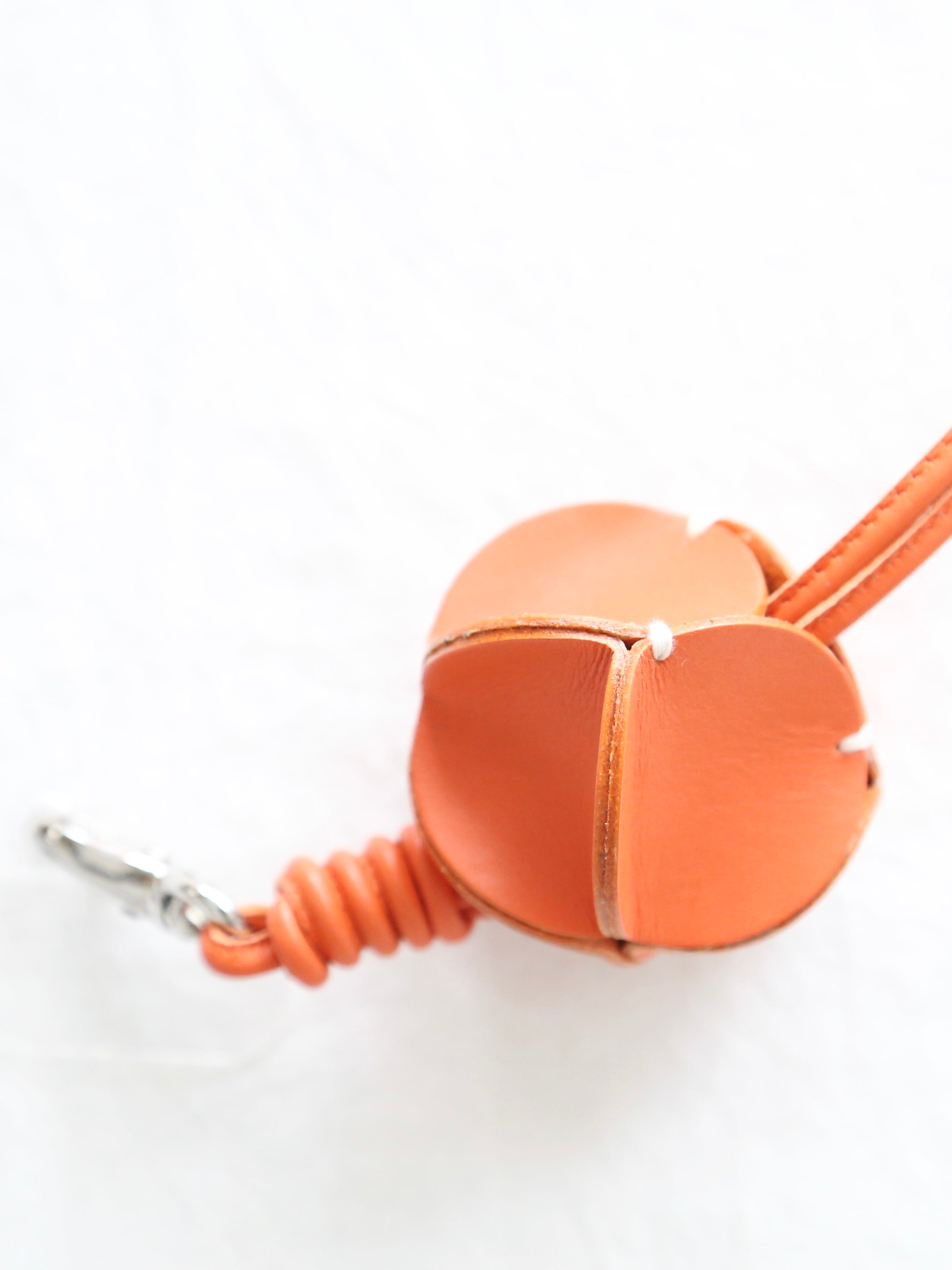 過去のコレクションで制作した裁断後に余った革を再利用し、造られたネックタイプの携帯ストラップです。