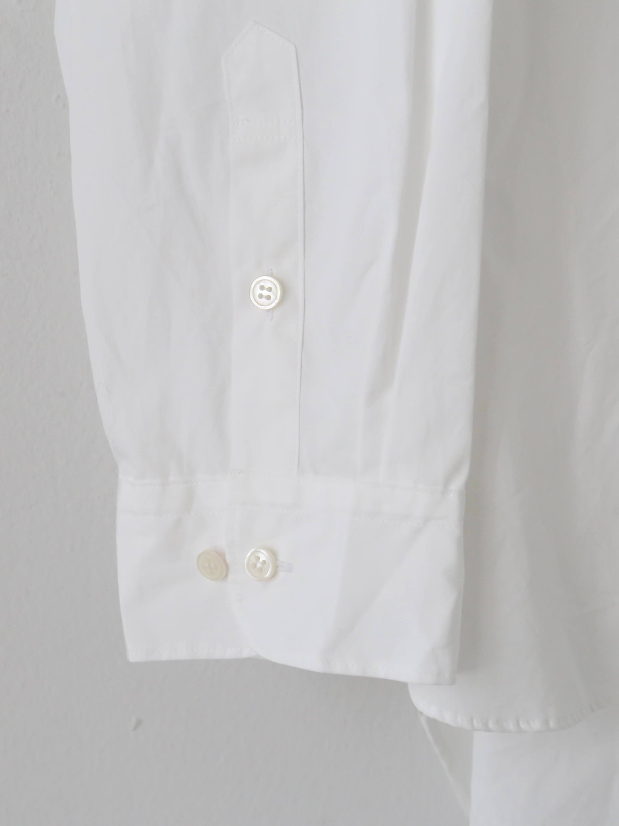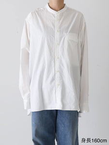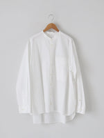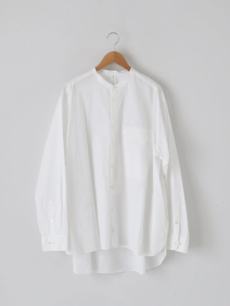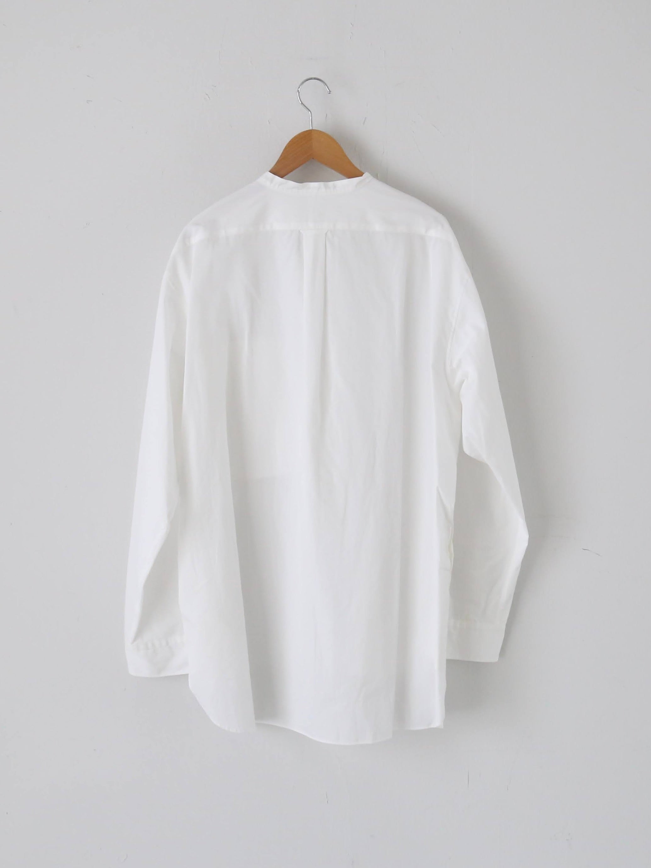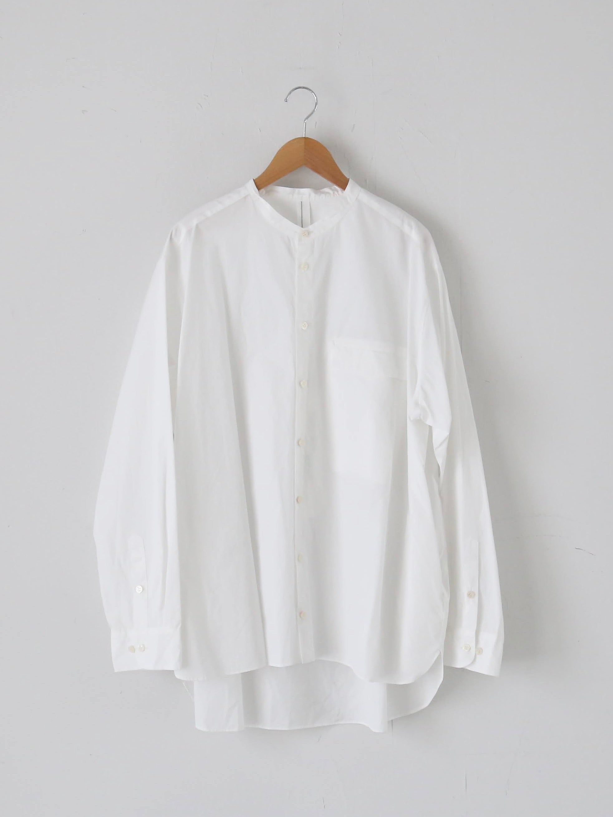 シャツのクリーンな雰囲気とバンドカラーの組み合わせは、程よい抜け感が出ます。