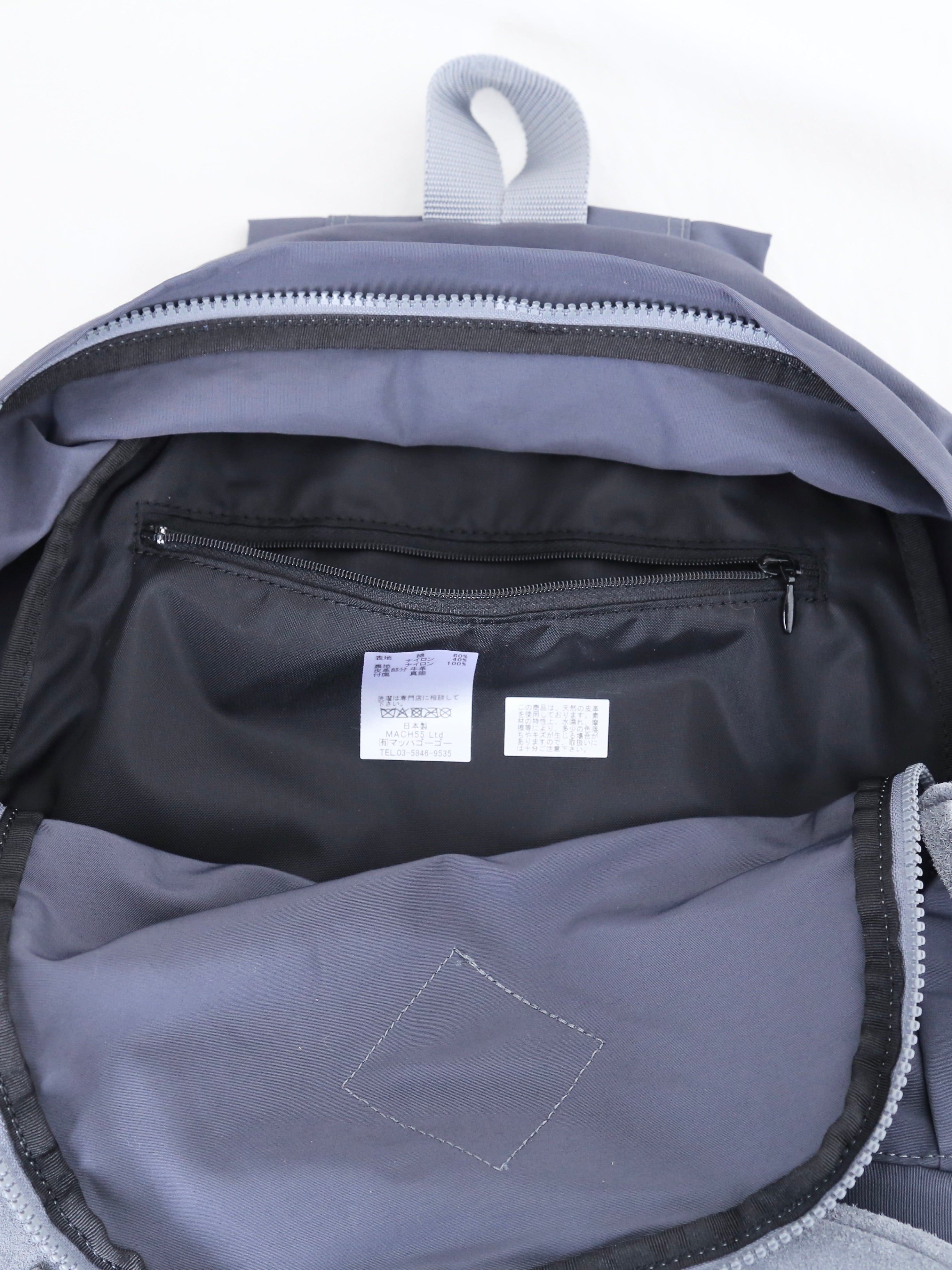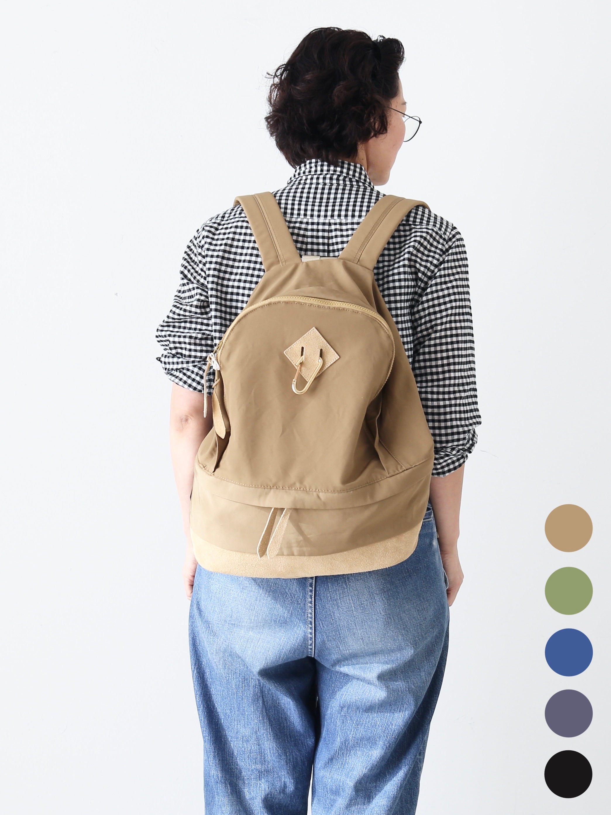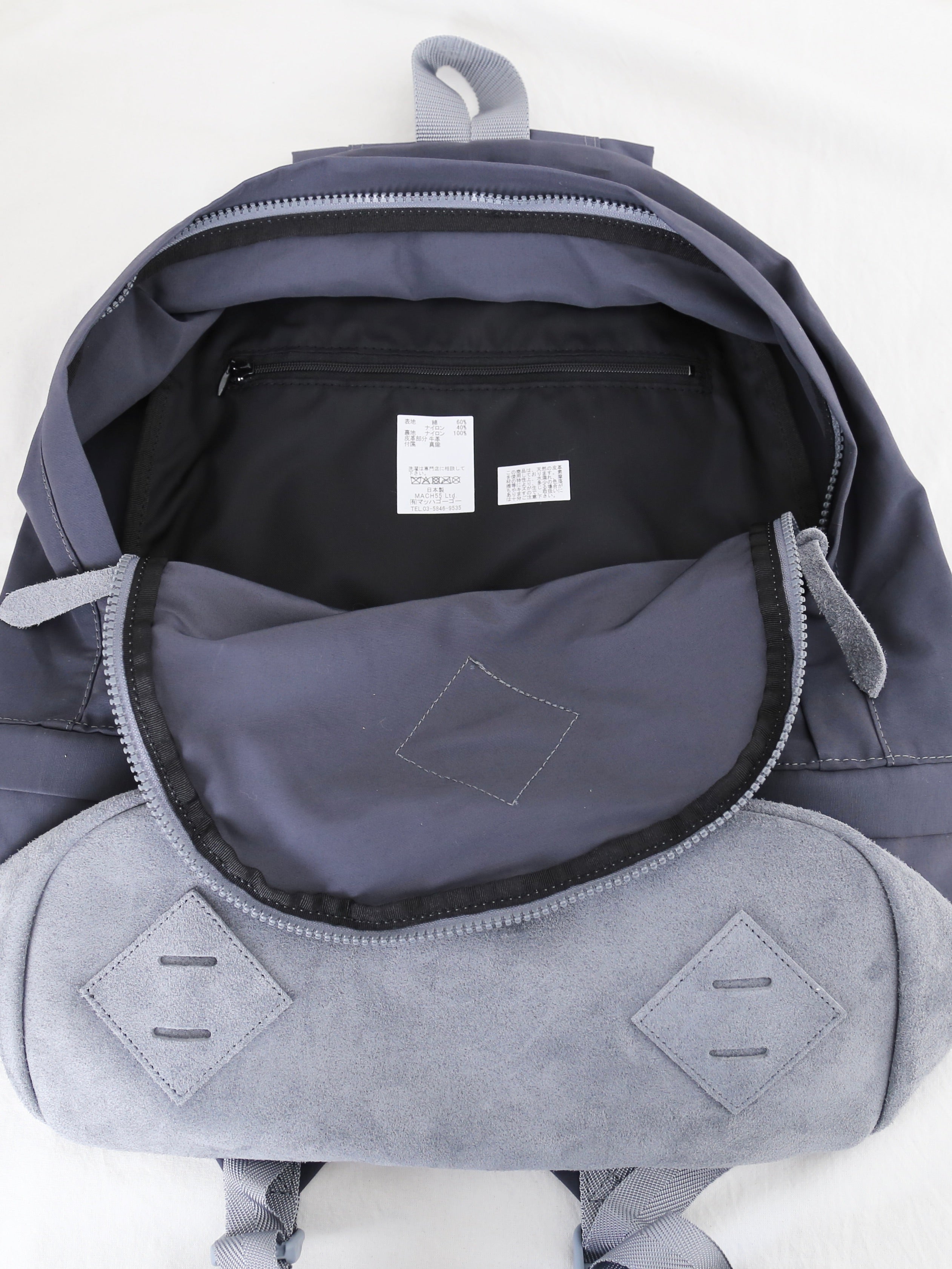 コットンナイロンの柔らかくて軽い生地に、牛革のスエードが使われています。