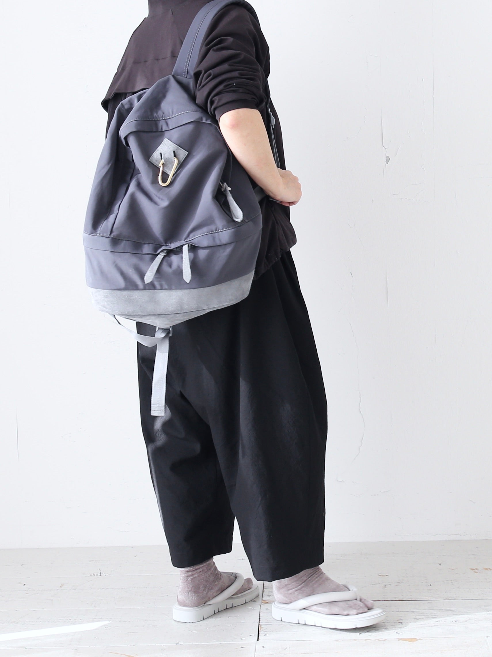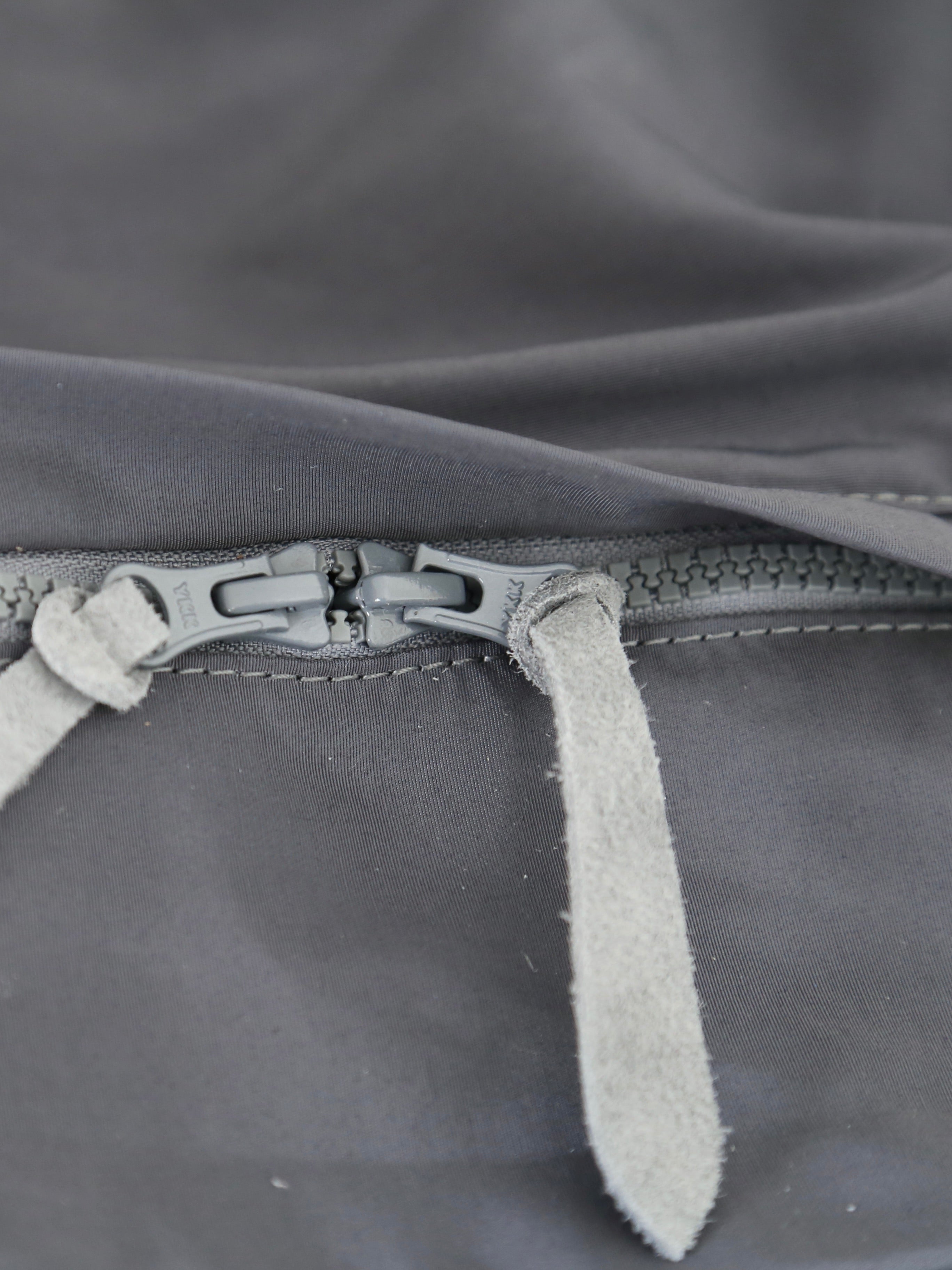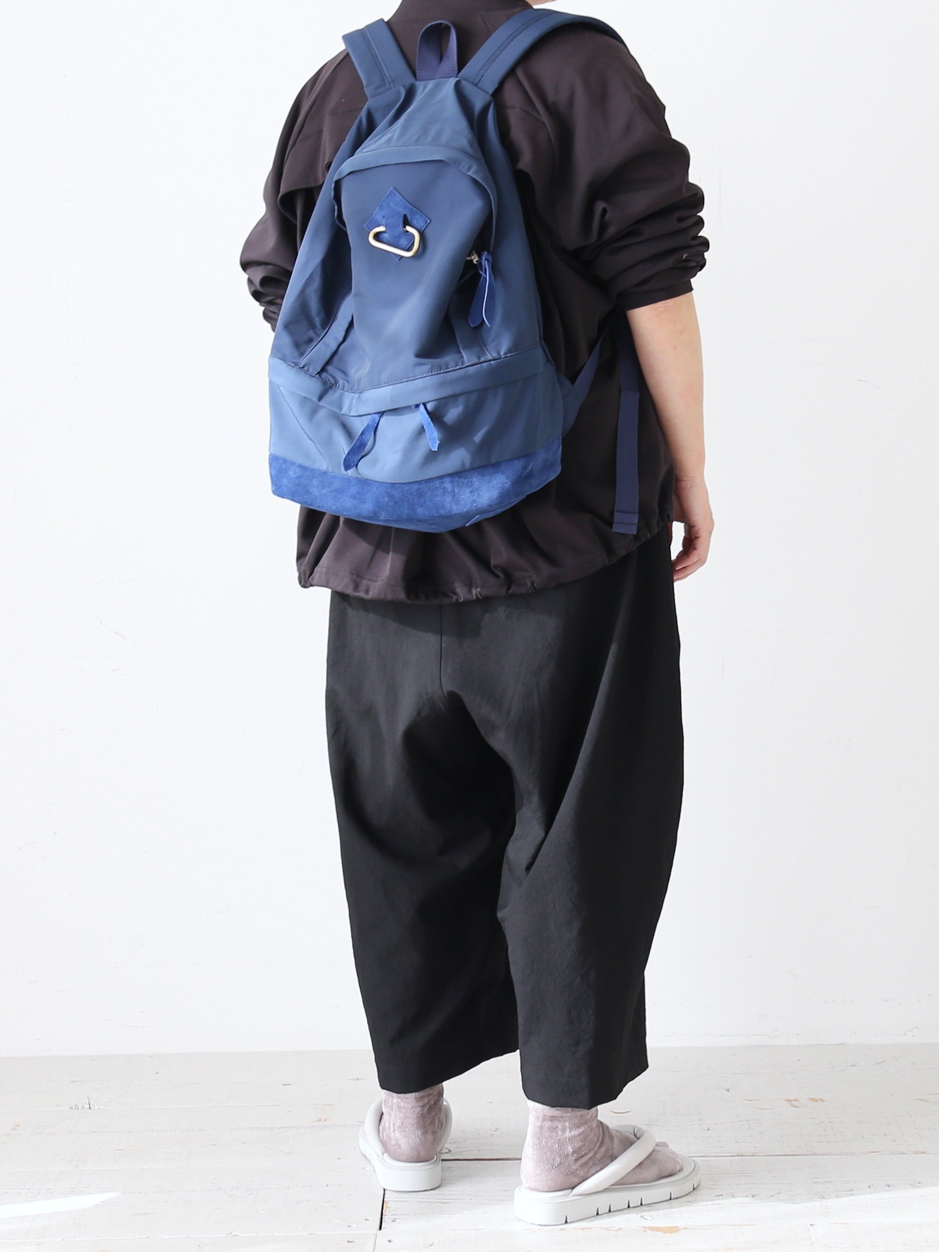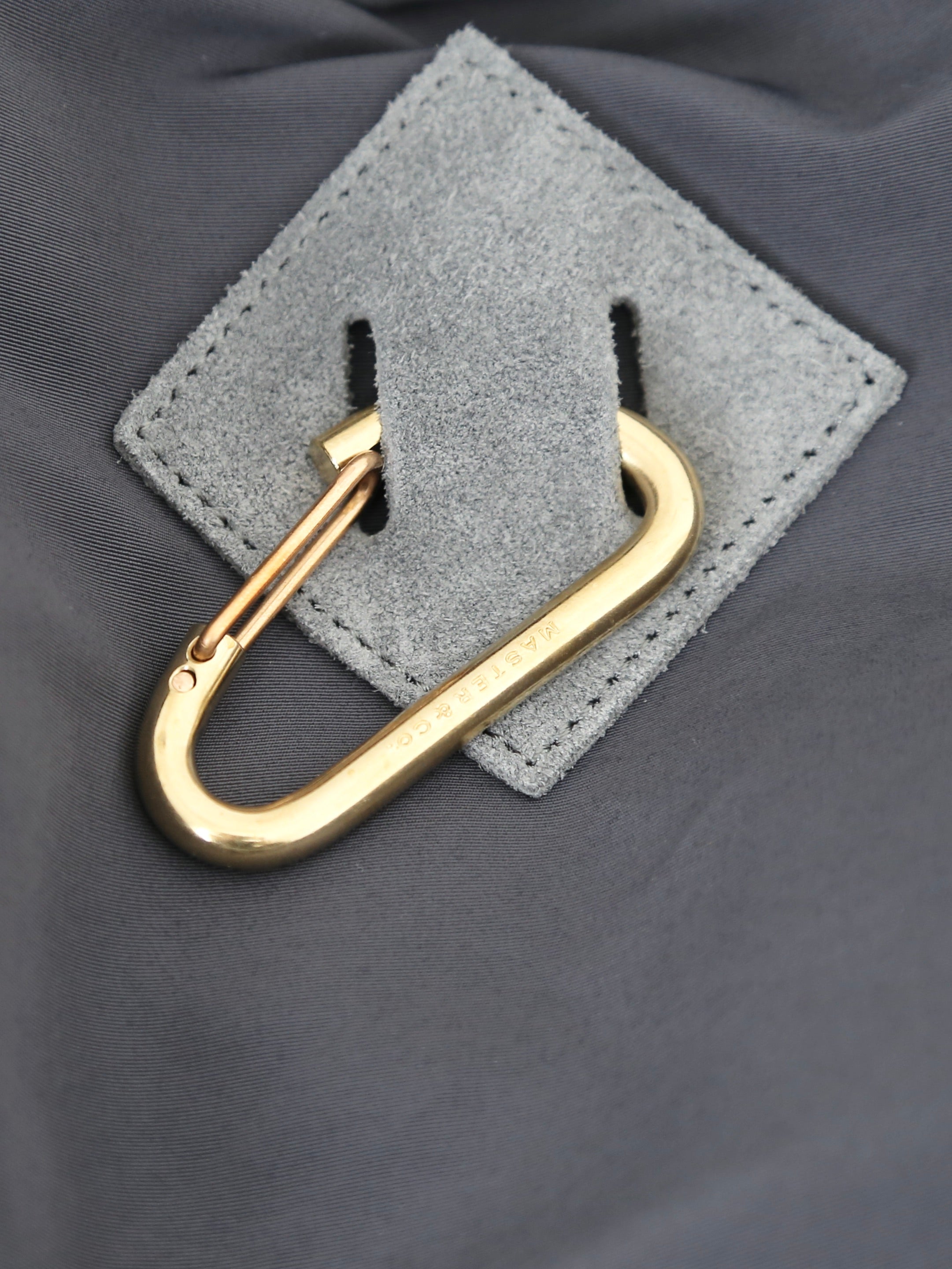 コットンナイロンの柔らかくて軽い生地に、牛革のスエードが使われています。
