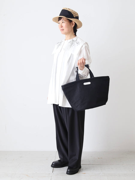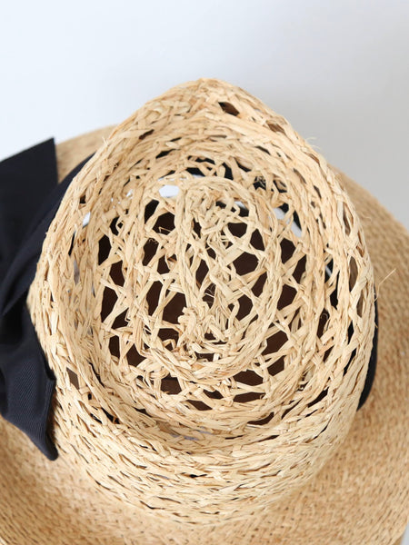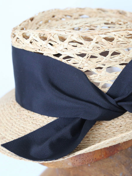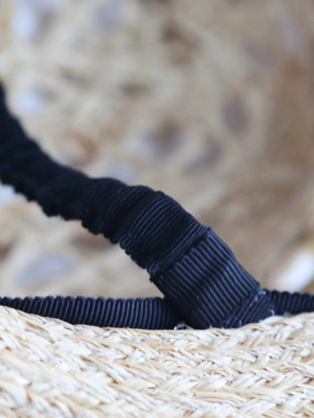 ブラックのリボンがポイントとなり、ナチュラルな中にかっこよさも。