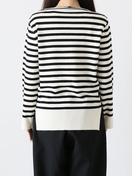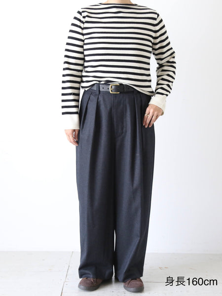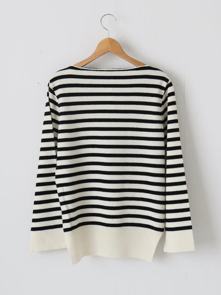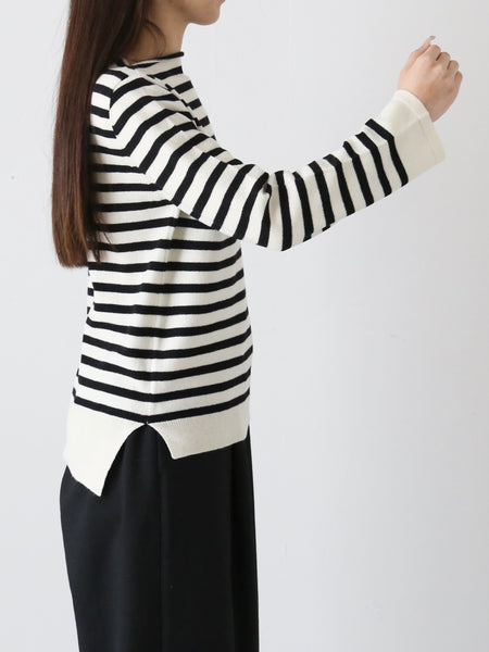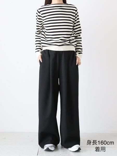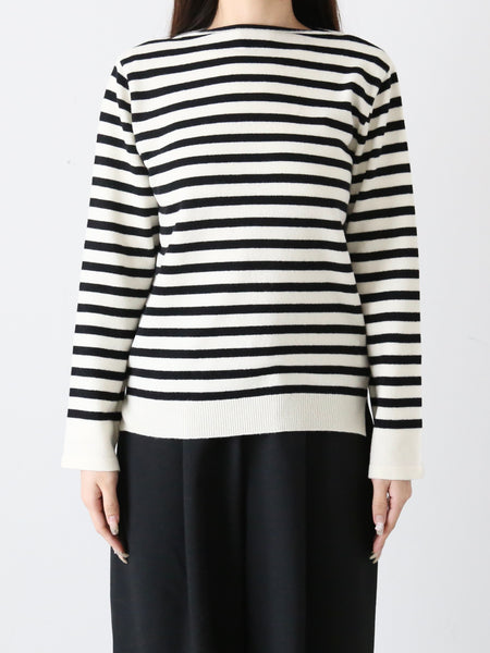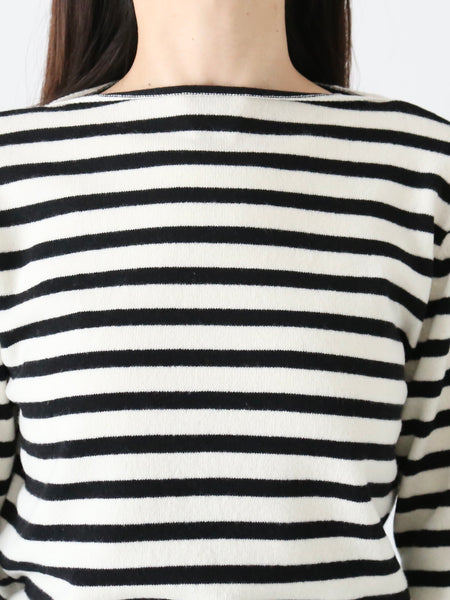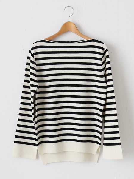 ボートネックですが、空きすぎていないので、インナーも出にくくお召しいただきやすいです。