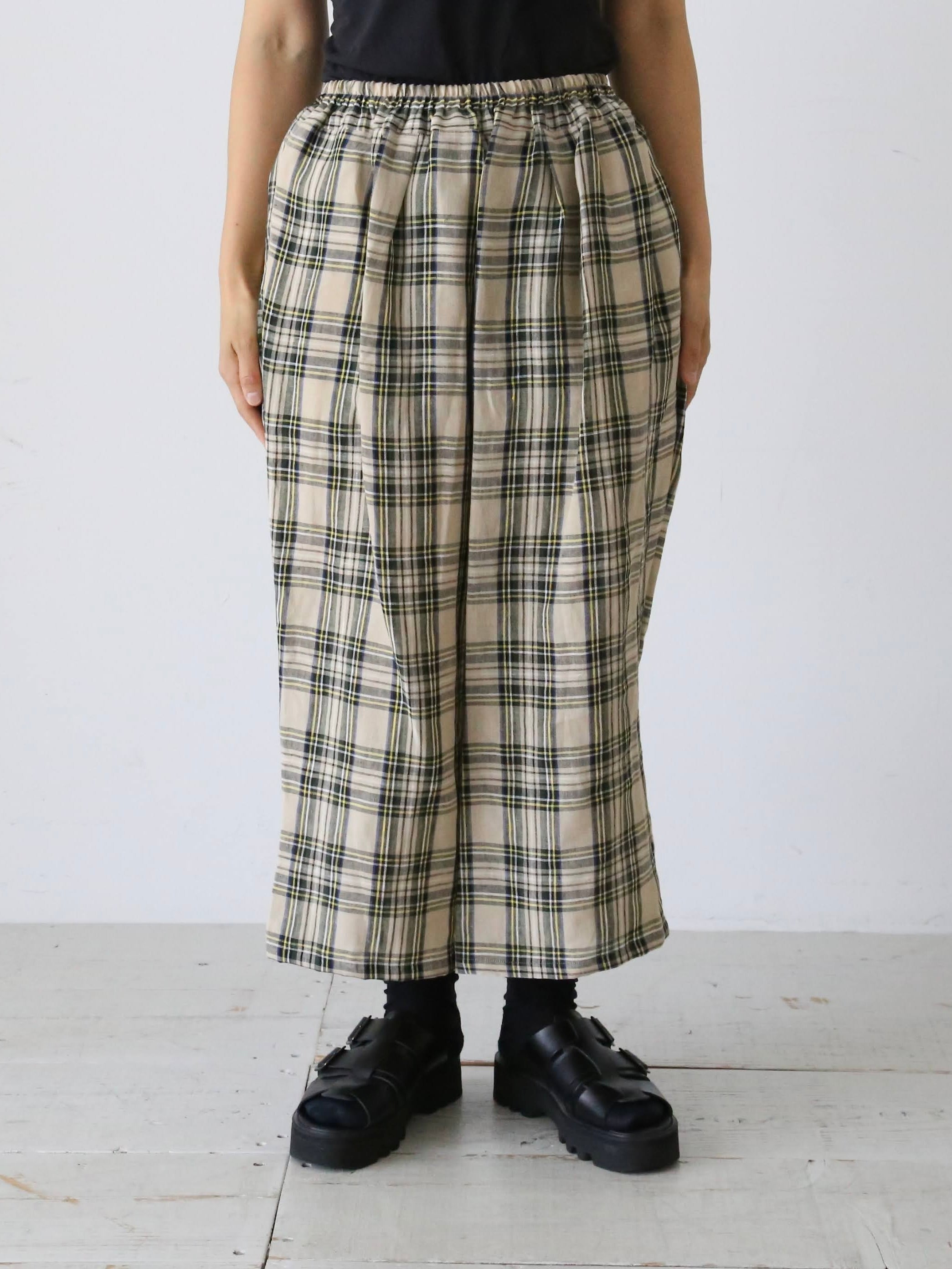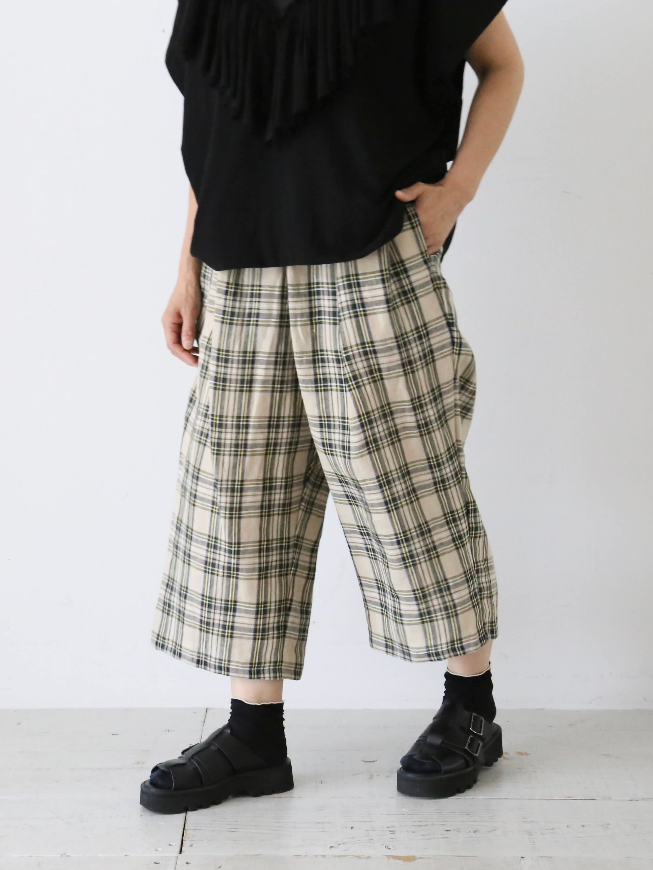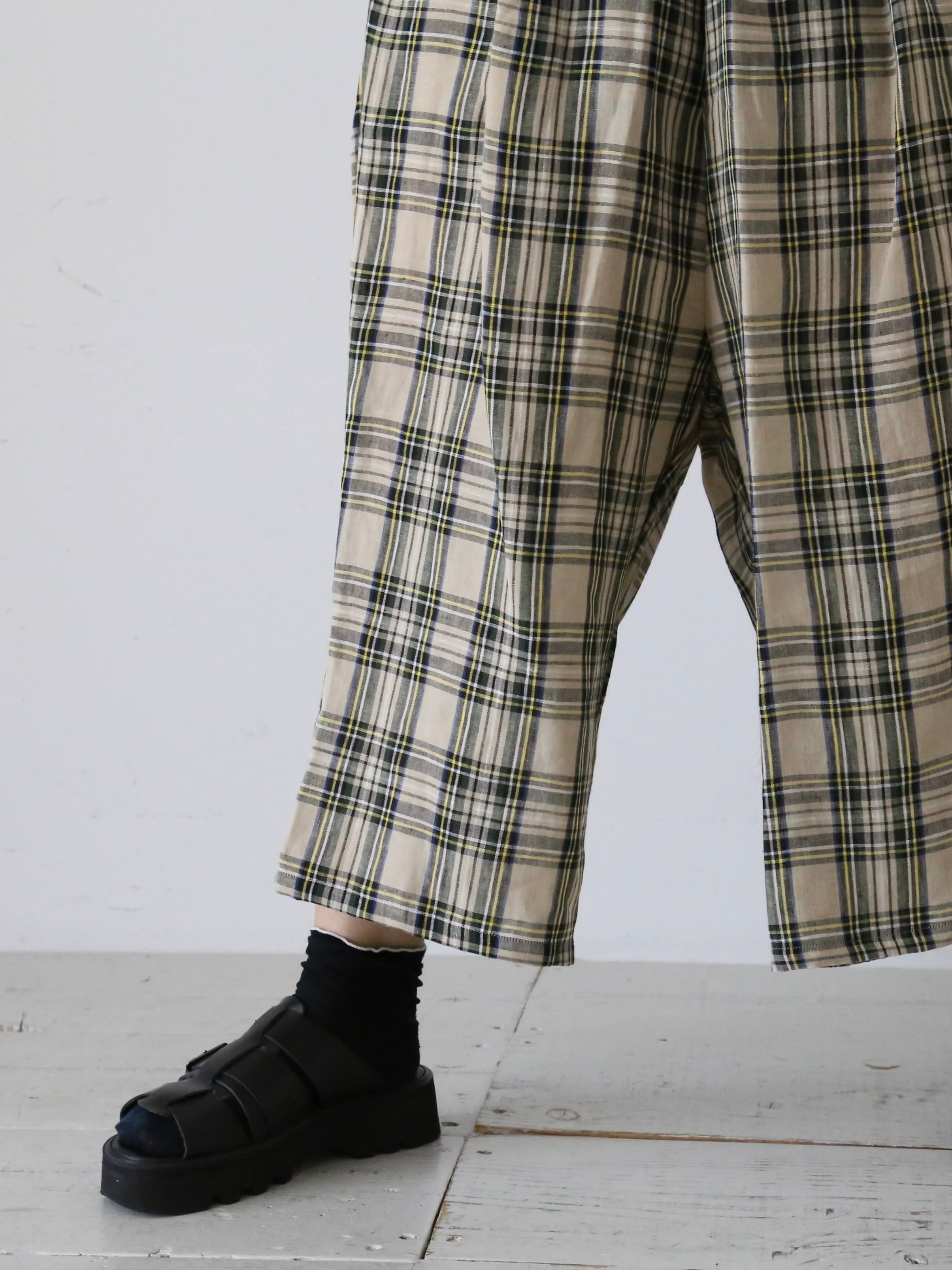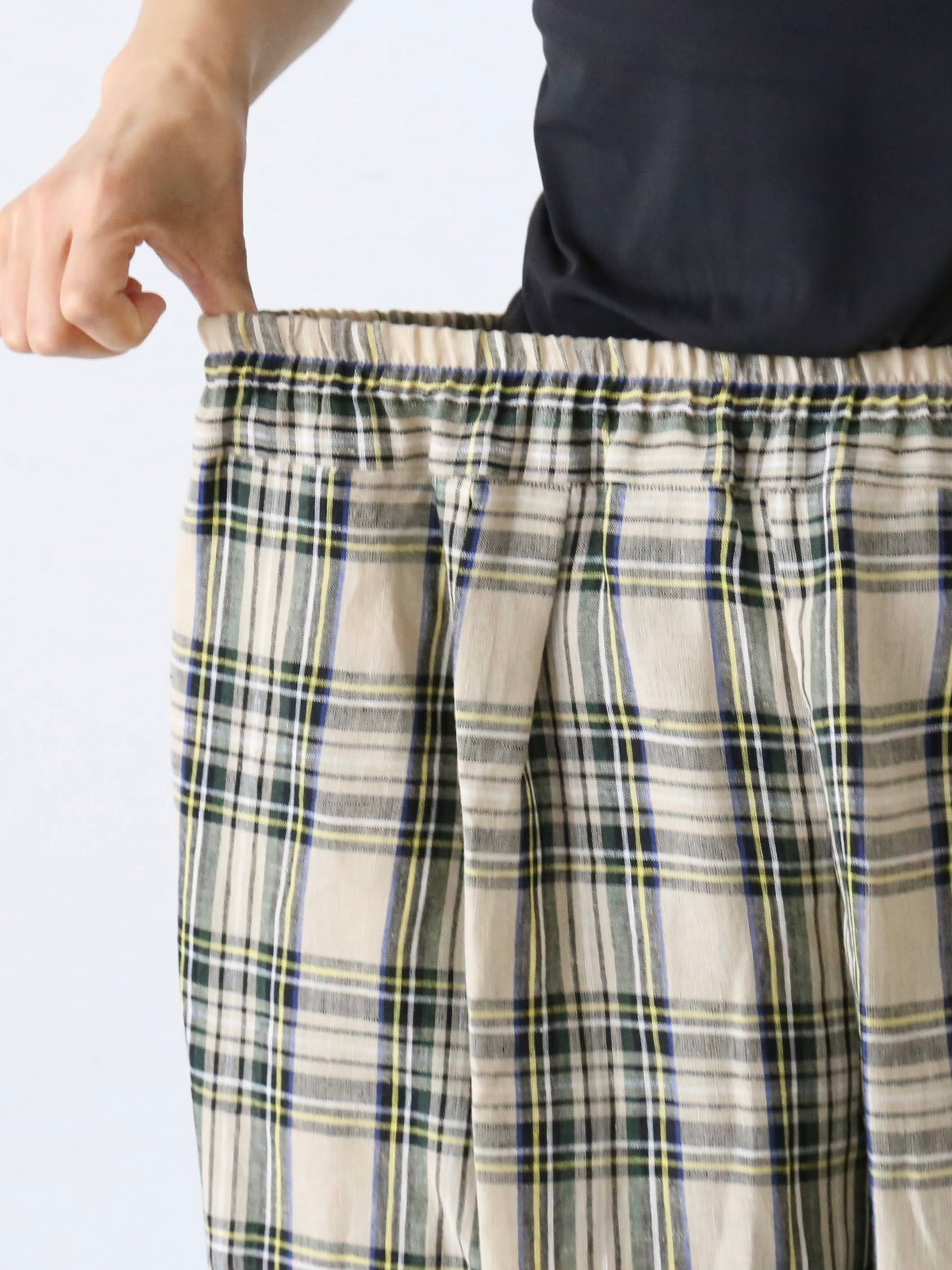 リネンタータンチェックゴムパンツ[6960]