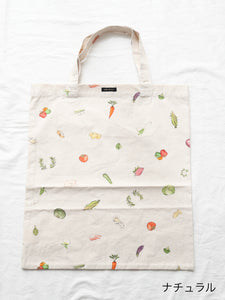 水彩でリアルに描かれた野菜(食材)シリーズのトートバッグ。