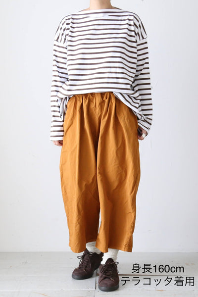程よいボリュームとすっきりとした着丈でどんなトップスとも合わせやすい万能パンツです。