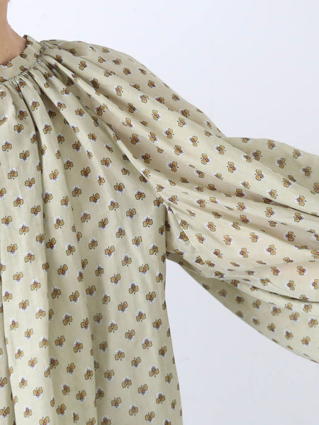 首周りから細かいギャザーが施されていて、裾までふわっと仕上がっています。