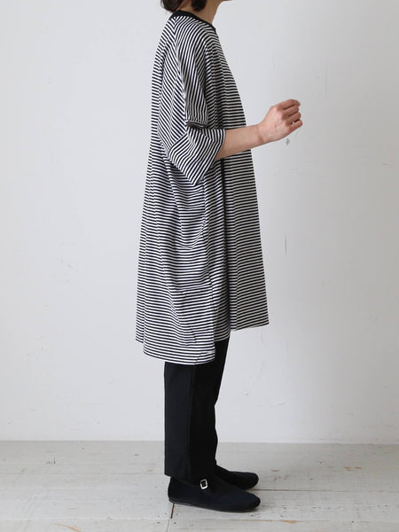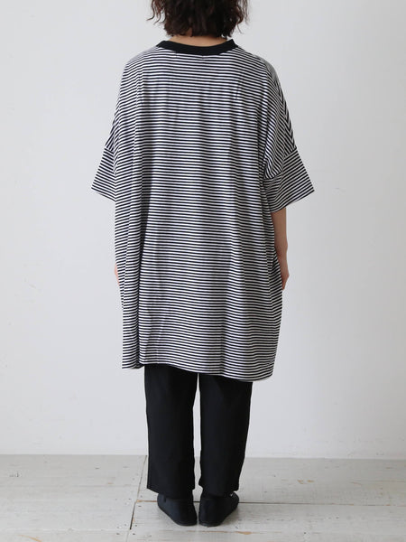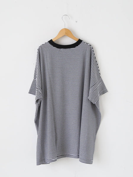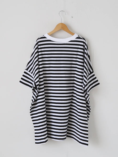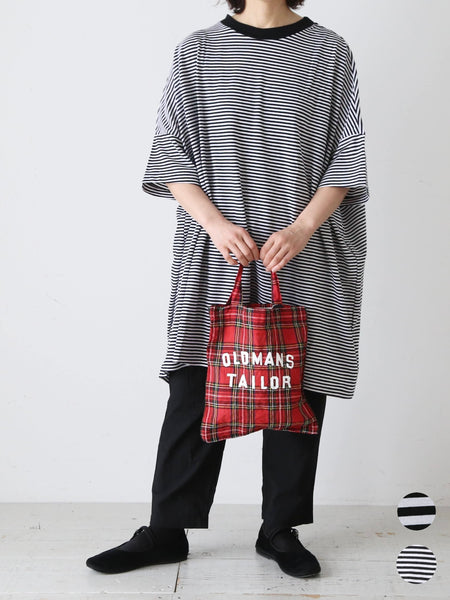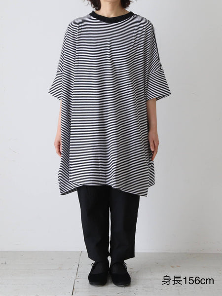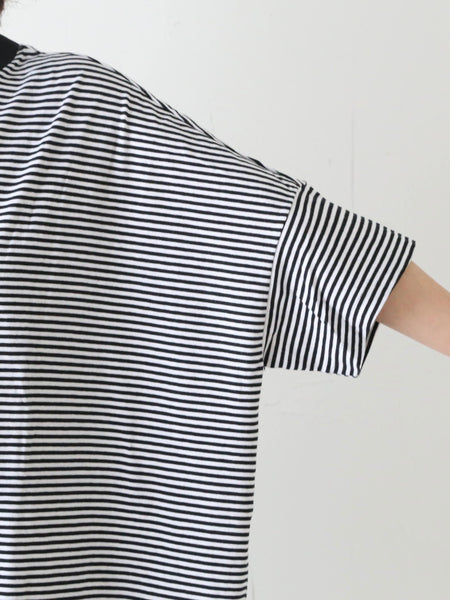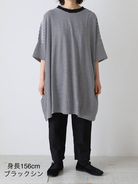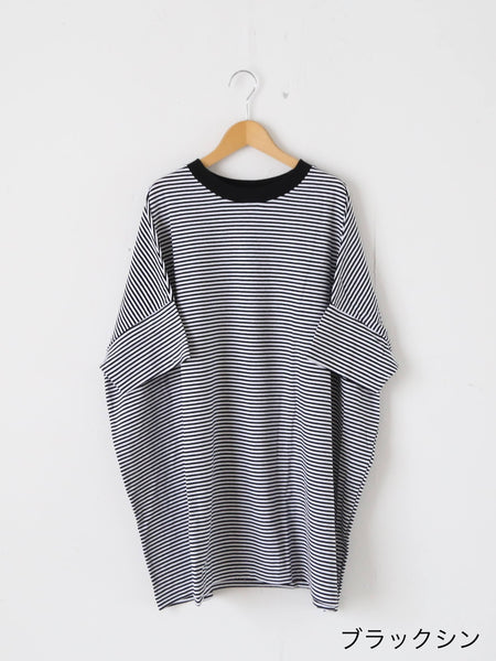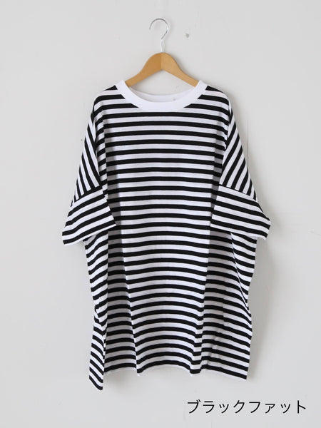 ガーゼボーダーオーバーサイズハーフスリーブTシャツ [8039]