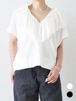 広めのアームなので、暑い日にも涼やかにお召しいただけます。