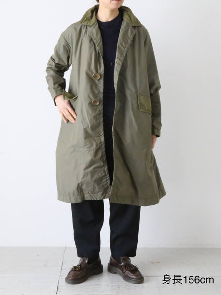 ウエザーコートの持つ無骨さと、甘さのある襟が絶妙なバランスです。