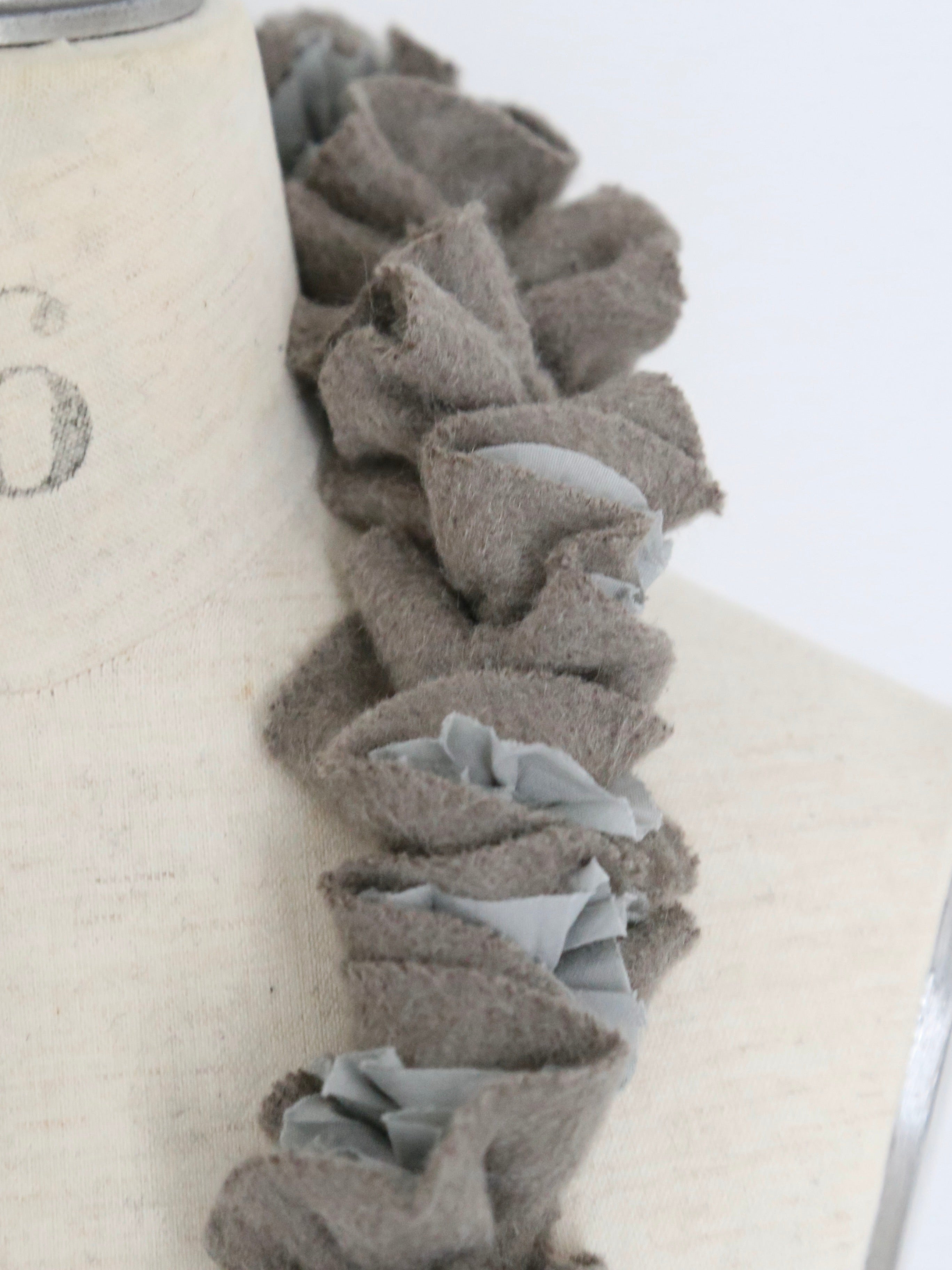 起毛のシルク素材にコットンシルクのパーツを組み合わせています。