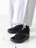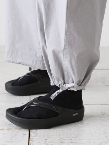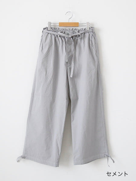 裾部分がストリング可能なひとつで二通りの楽しみ方ができるパンツ。