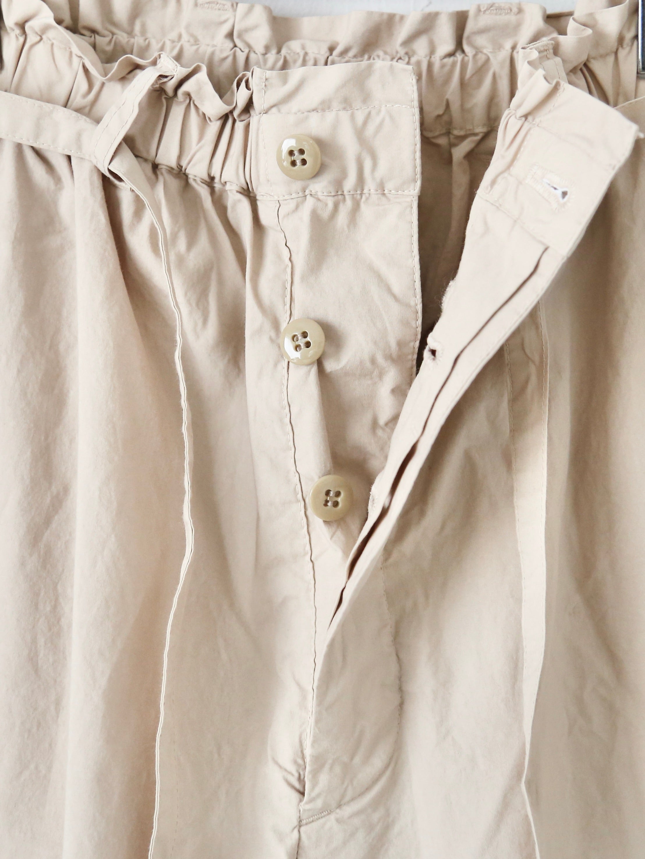 ウエスト部分は緩くて楽なゴムと付属のベルトが付いており、インもアウトも可愛らしい印象に。