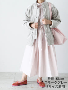 チャイナな雰囲気のデザインですが、ざっくりとした形と合わせやすいカラーなので、馴染みがよく、いろいろなスタイルにマッチします。