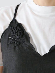 装飾部分はインドの工房で、ビジューを一粒一粒生地で包んで仕上げています。
