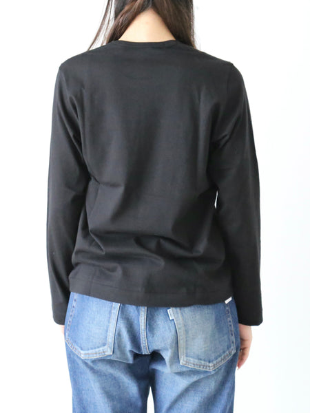 シンプルなデザインで、重ね着もしやすく一年を通してお使いいただけます。インナーとしてもお使いいただけますが、taoのTシャツは一枚で着ても綺麗です。taoComme des Garçonstao 長袖Tシャツ [TZ-T002-051]色:ブラック素材:綿100%サイズ:MサイズMサイズ 肩幅:35.5cm 身幅:46cm 着丈:62cm 袖丈:56cm アームホール:21cm*平置き寸法です、若干のサイズ違いはご容赦くださいませ。こちらの商品は店頭にて同時に販売しております。 ご注文いただいた後に在庫状況を確認いたしますが「在庫切れ」の場合がございます。その際はメールにてご連絡いたしますので、何卒ご了承ください。