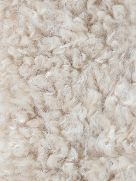 羊毛のように毛並みをカールさせたソフトな肌触りのフェイクファーを使用。