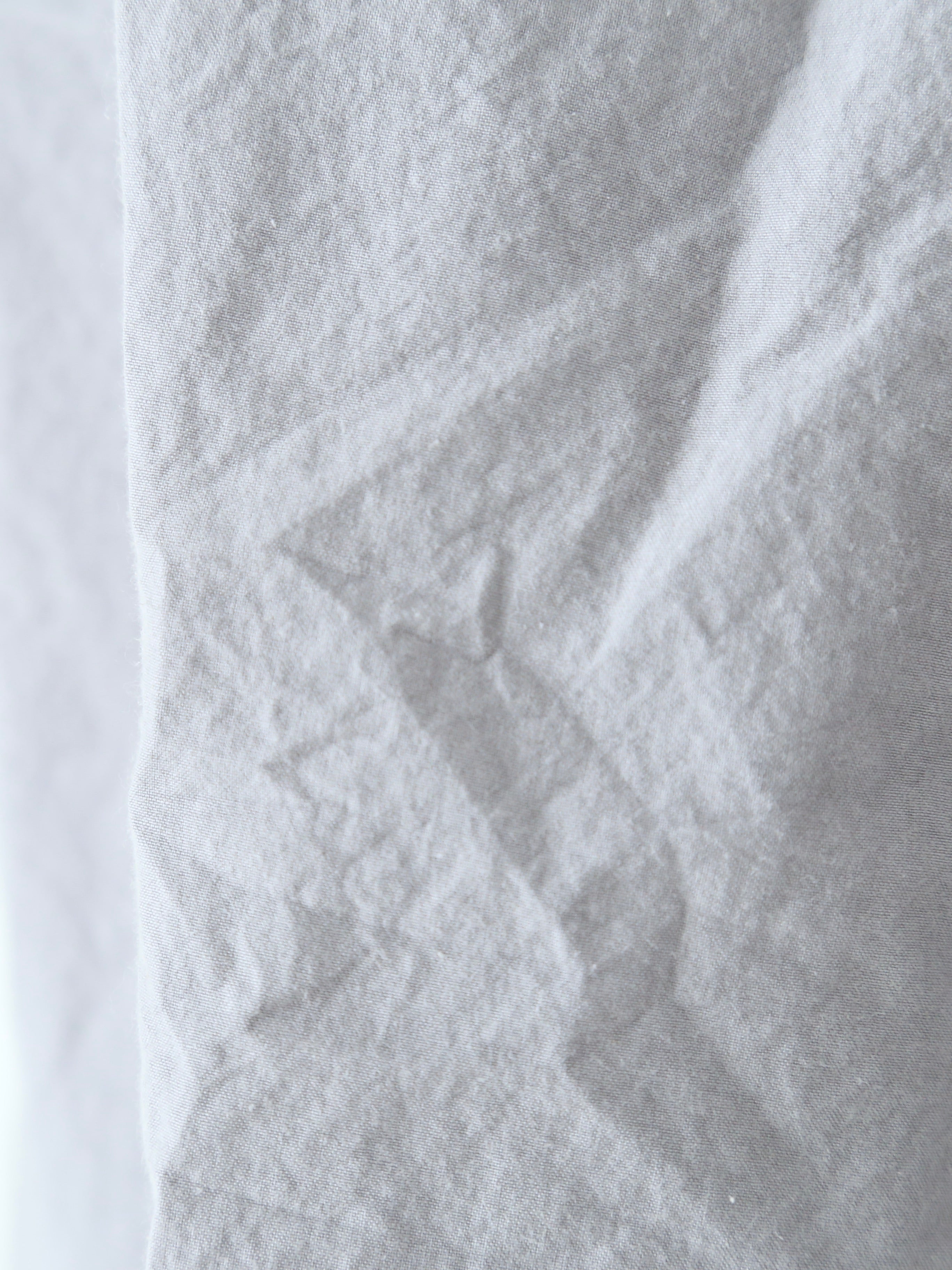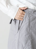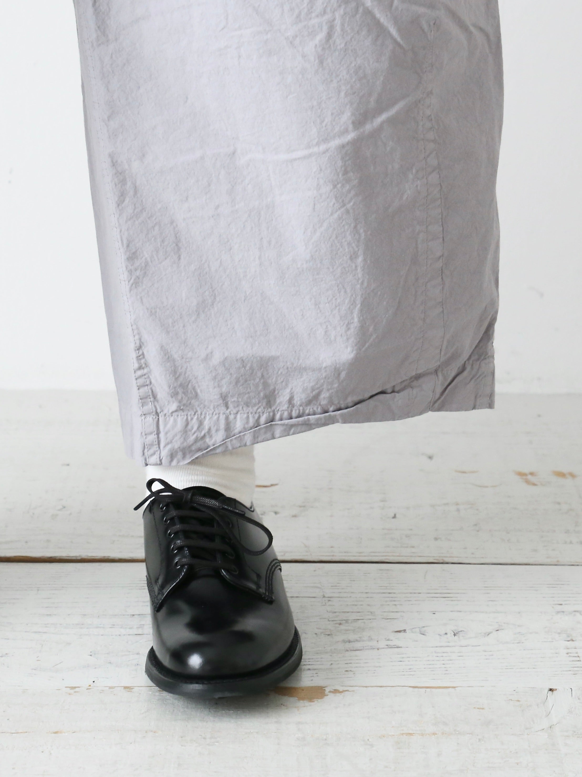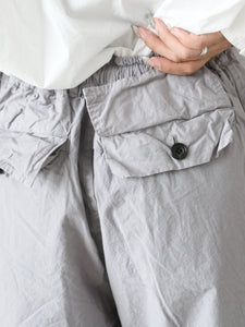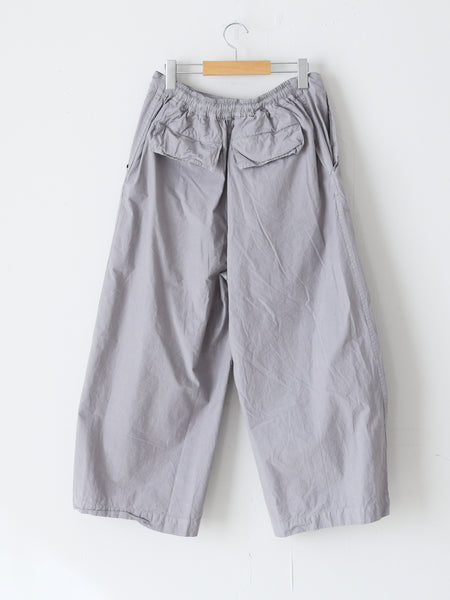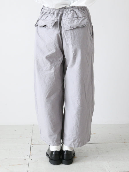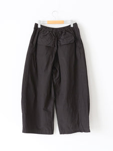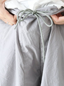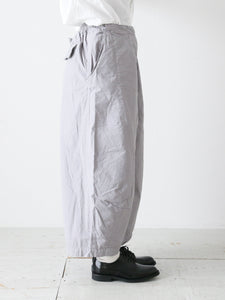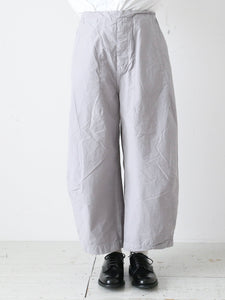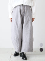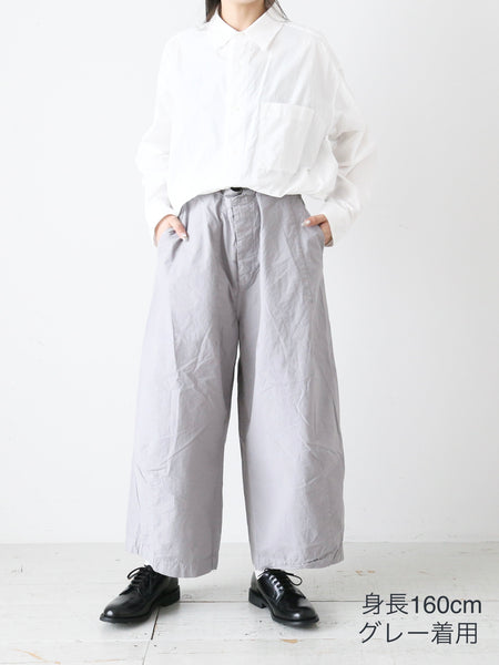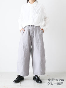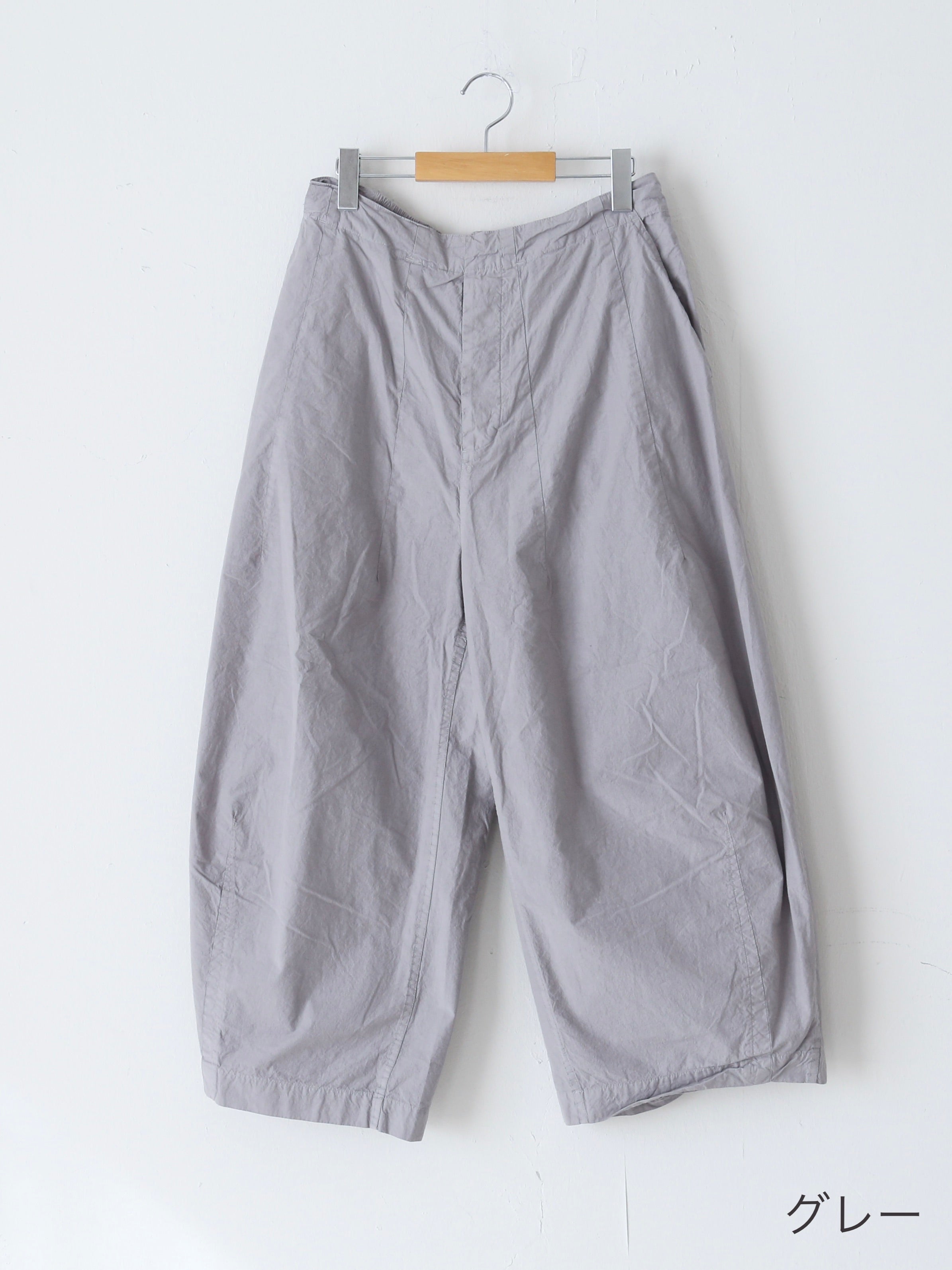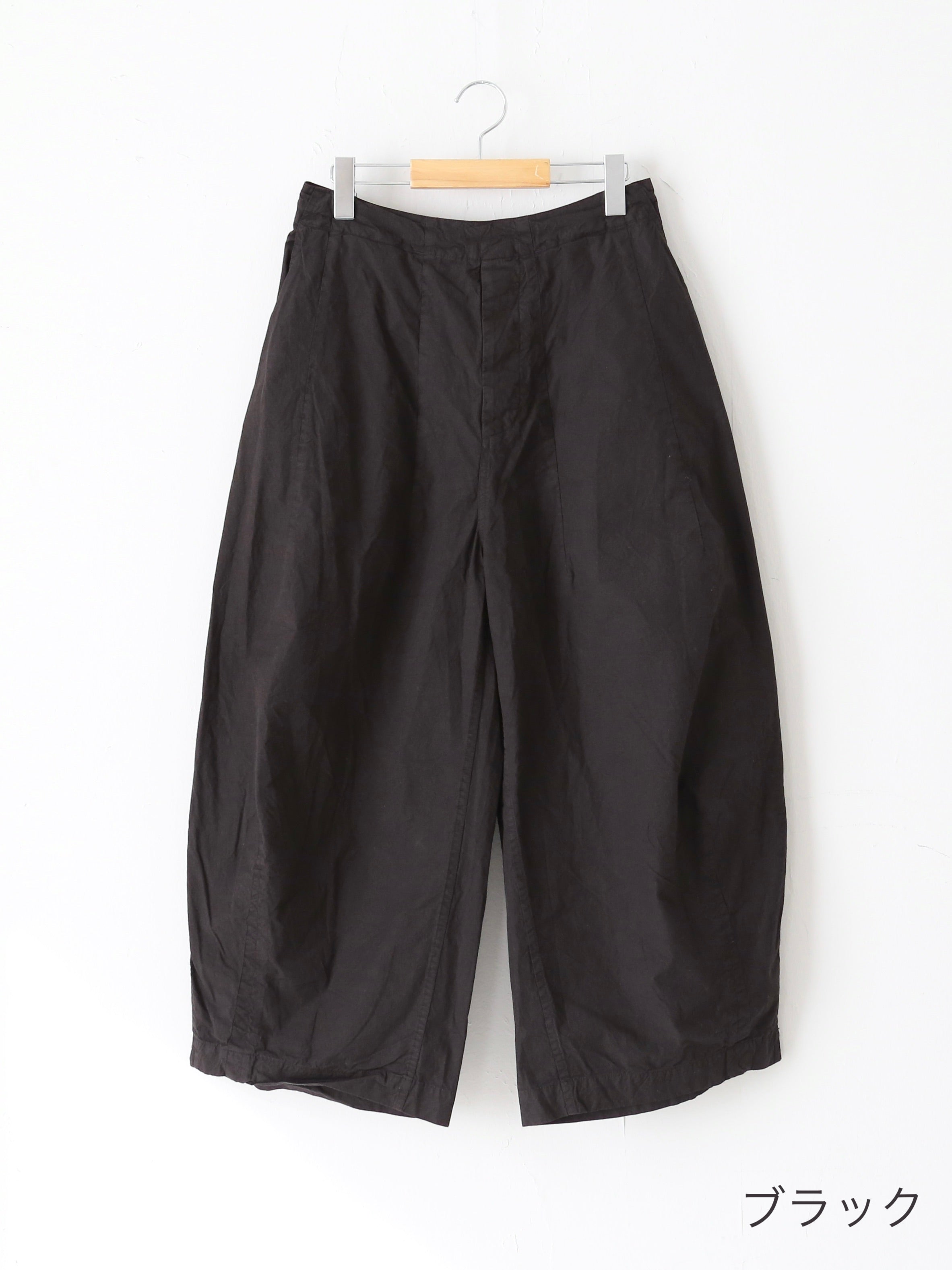 ハリがありながらも柔かい風合いが特徴で、ワイドめな裾幅ながらコクーンのようなぽってりとしたシルエットが可愛いです。