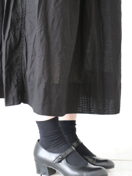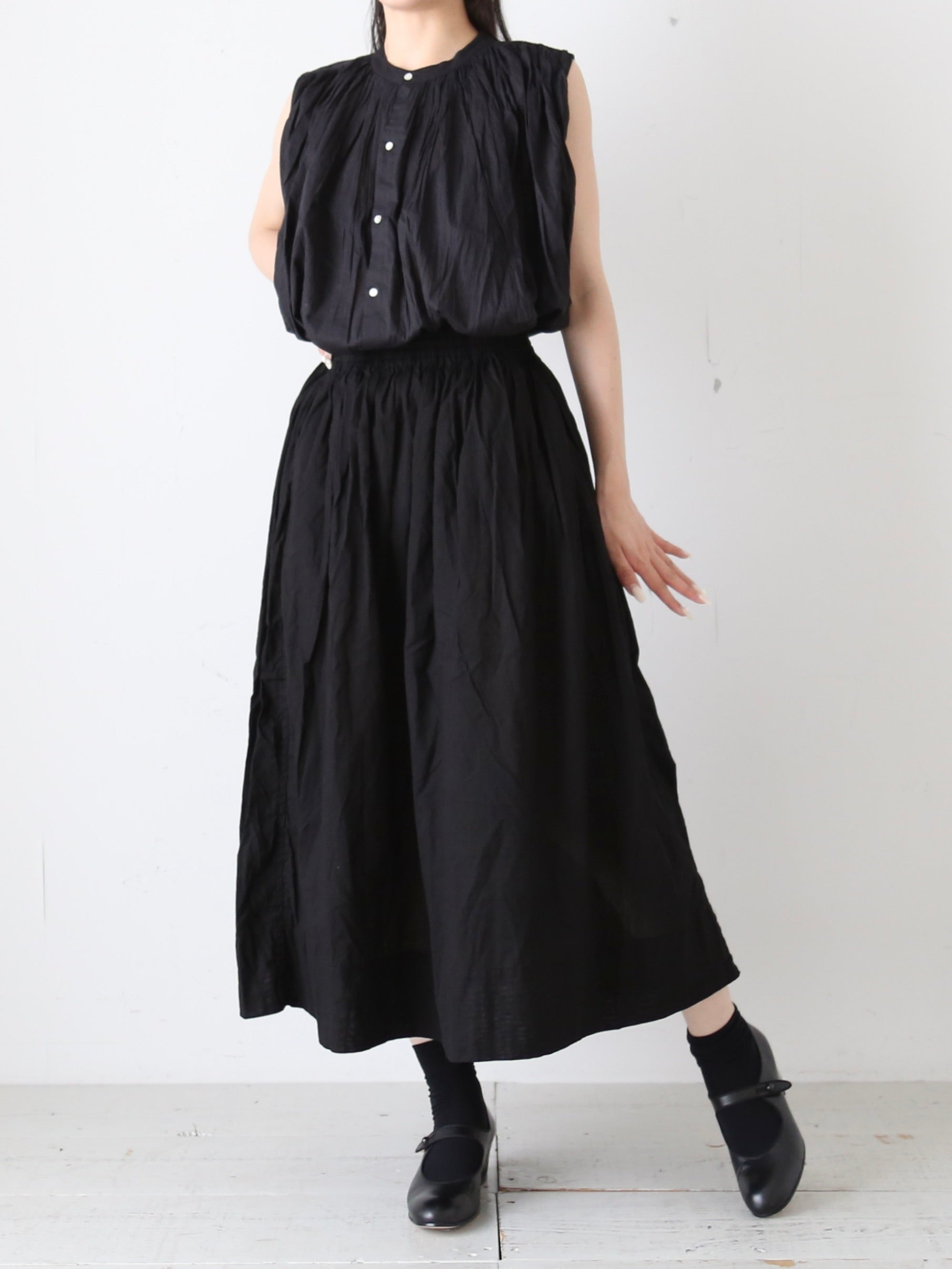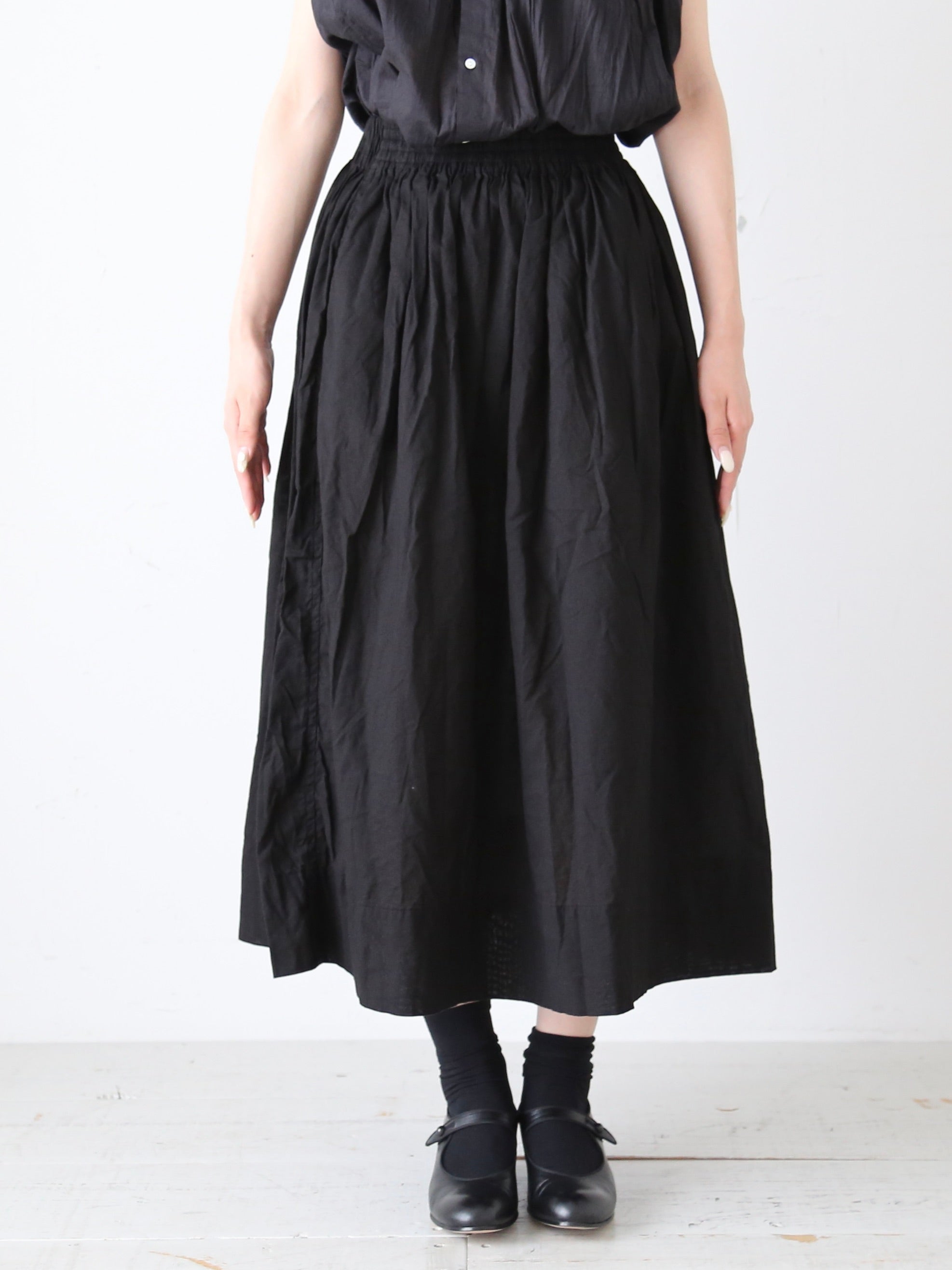 ウエストはたっぷりと寄せられたギャザーが裾に向かって広がり、ボリュームのあるシルエットが魅力です。