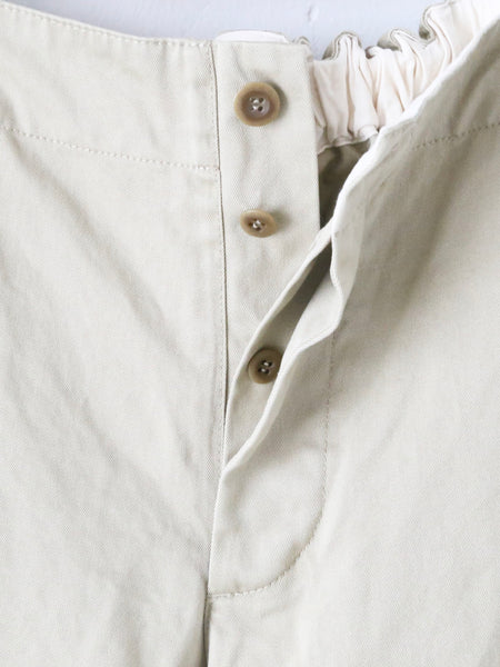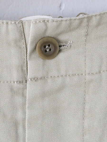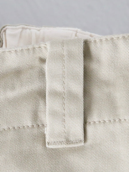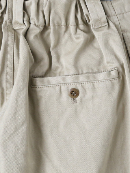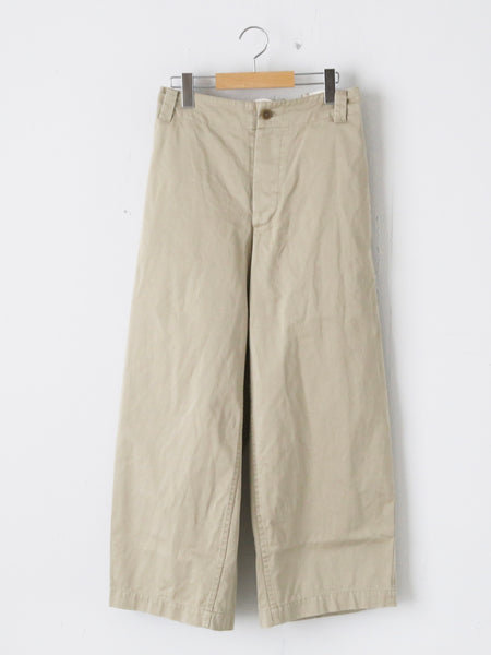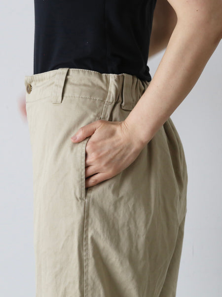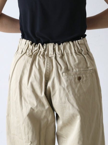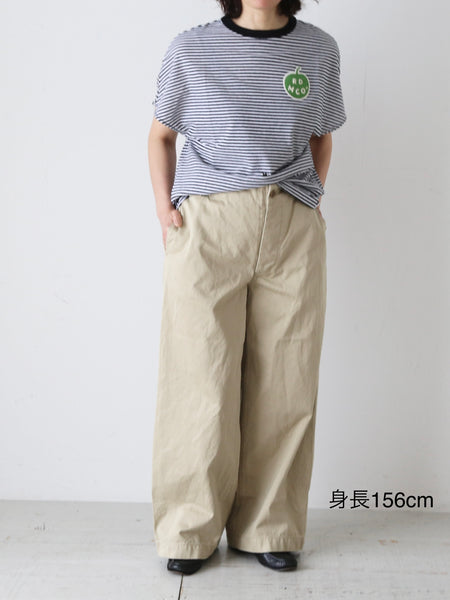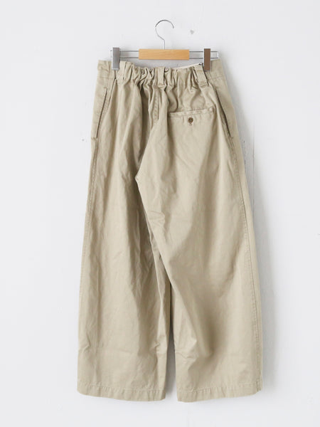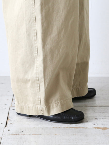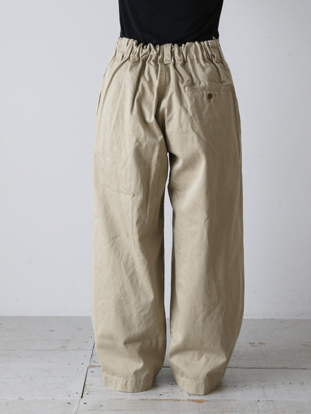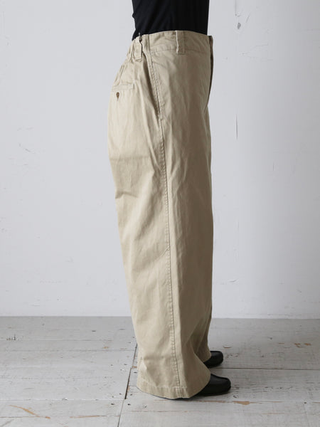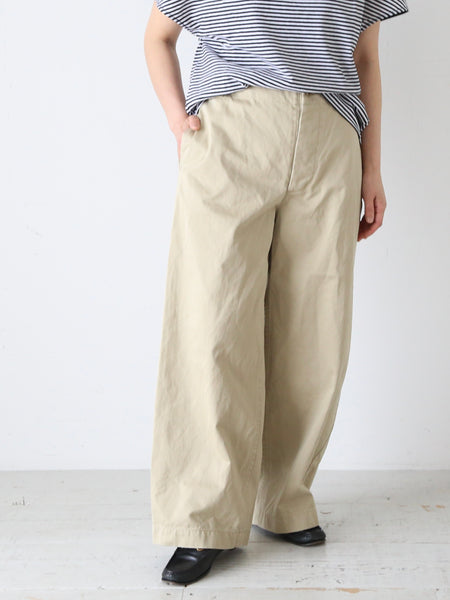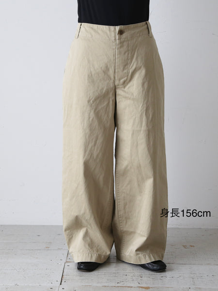 ワタリから裾に掛けて緩やかにカーブしたワイドシルエットが特徴のチノパンツです。